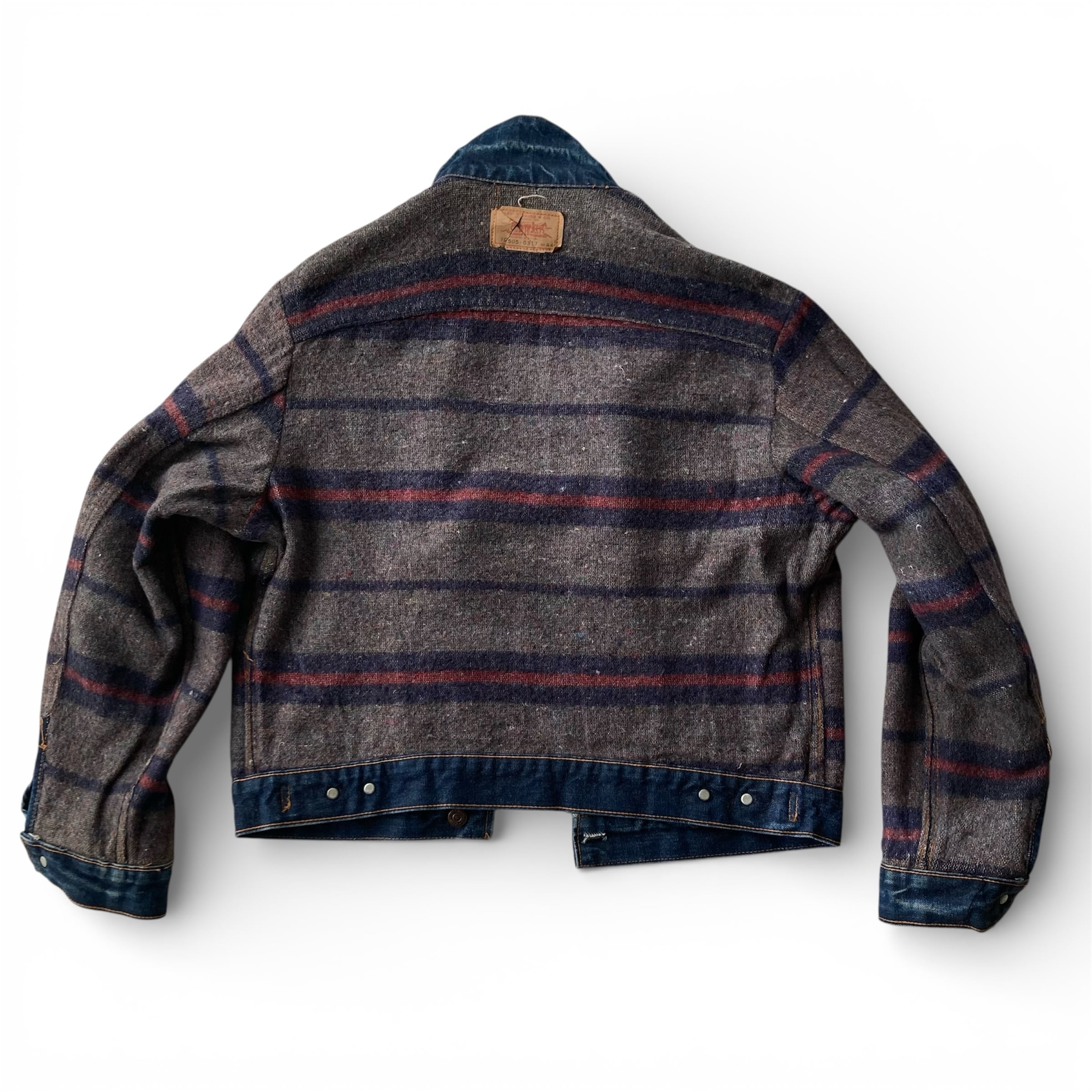 このブランケットライニングは、70年代まで質も見た目の雰囲気も良くしっかりとした織物ですが、80年代頃から横柄(ボーダー)から縦柄(ストライプ)になり、残念ながらブランケットとは言い難いウールフェルトにペイントした様な質も見た目も粗悪なライニングになってしまいます。