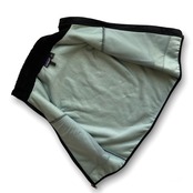 内側の第一層は、透湿性のあるキャプリーンメッシュ、中間層の第二層目は、防風性能強化フィルム、外側の第三層は、保温性が高く毛足が長い1/4インチのフリースからなる複合素材です。