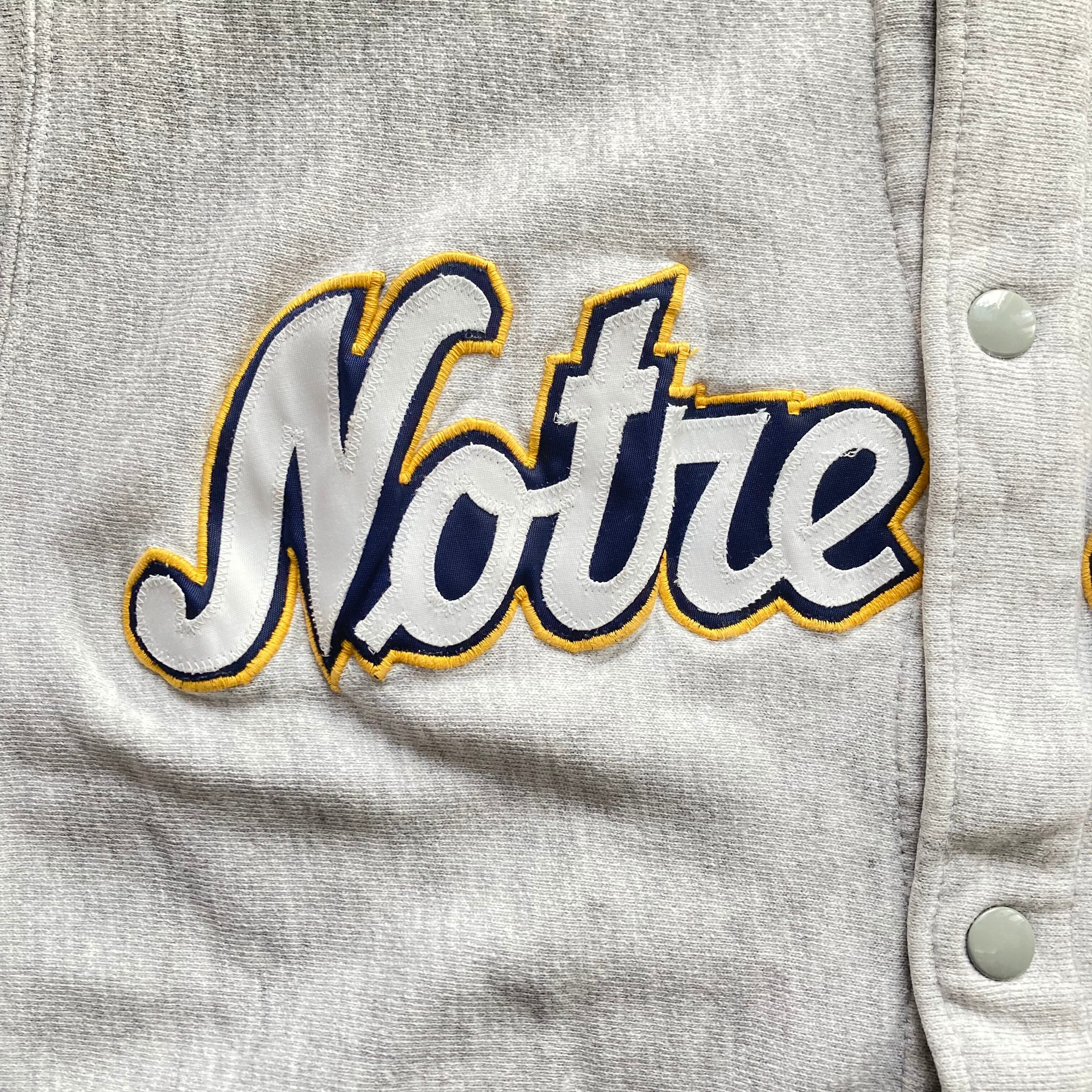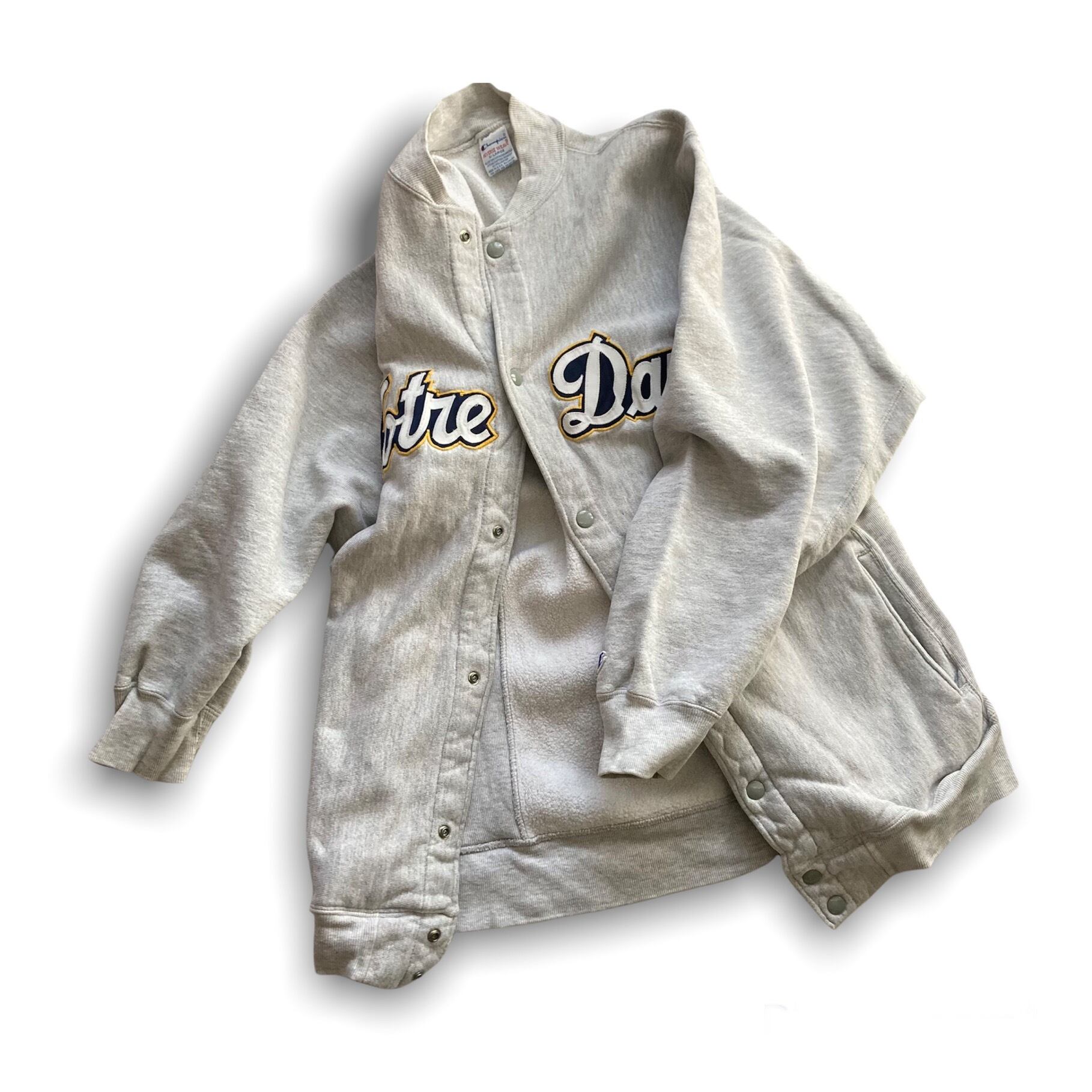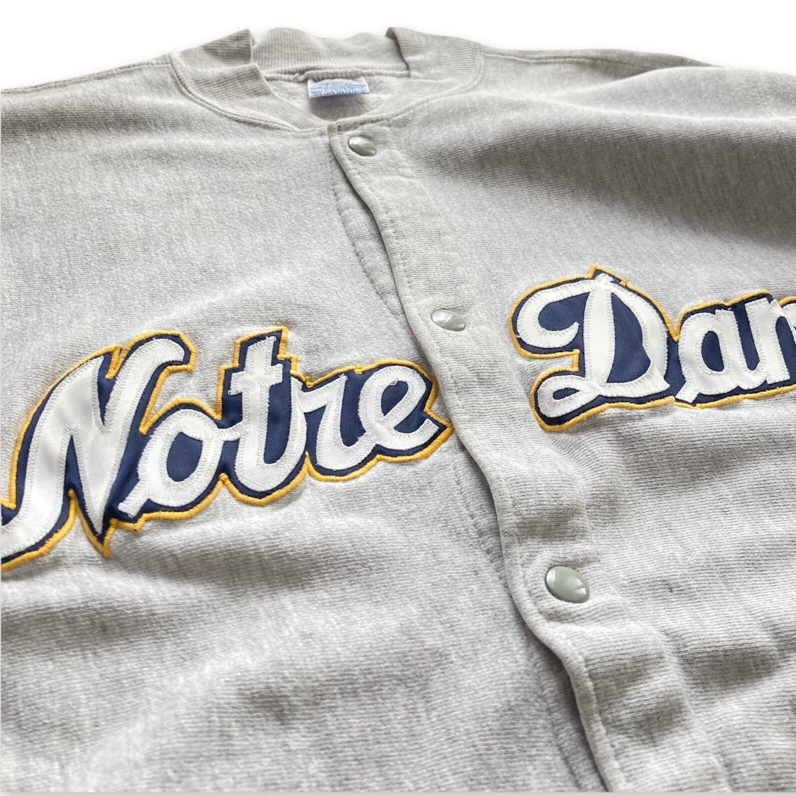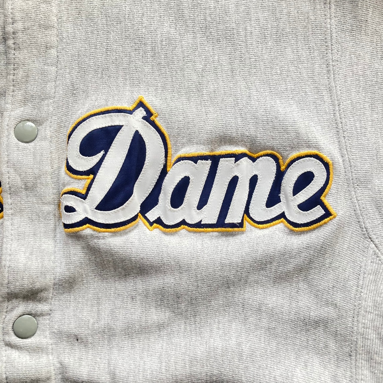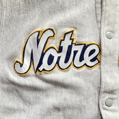 今回ご紹介するSnap Cardiganは、胸のNotre Dameのタックルツイルが特徴です。
