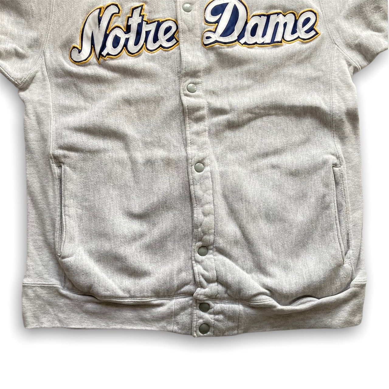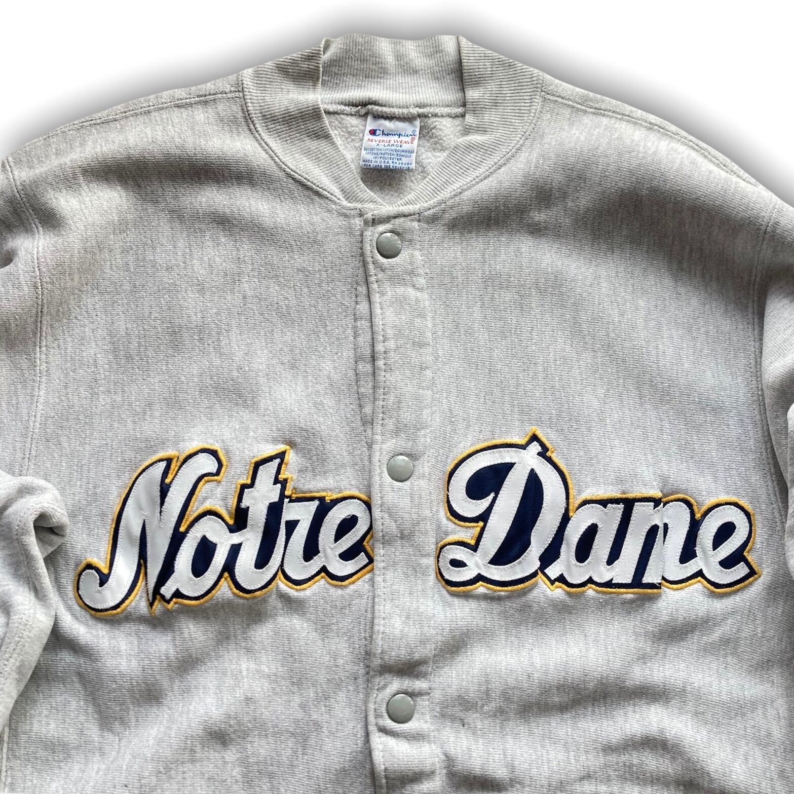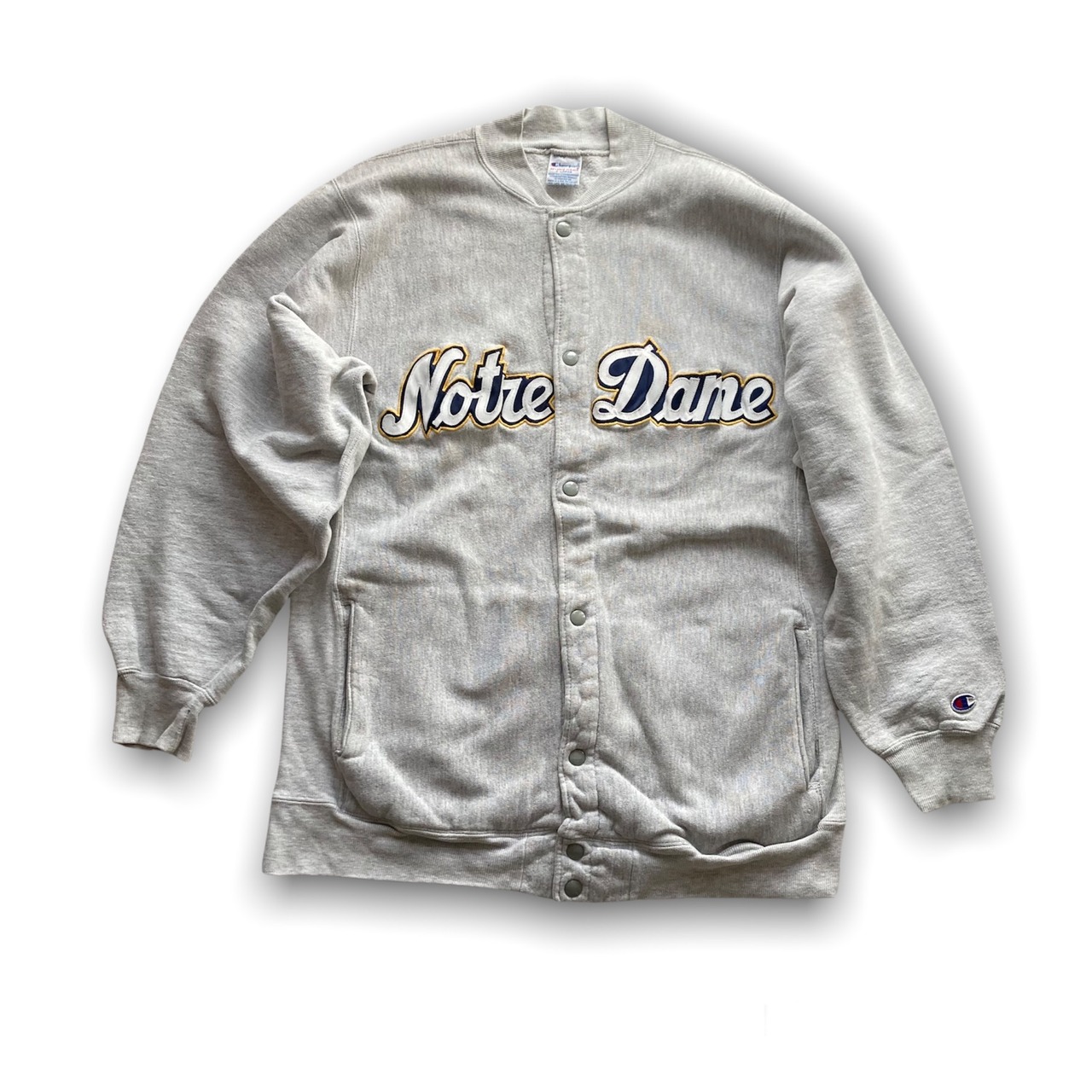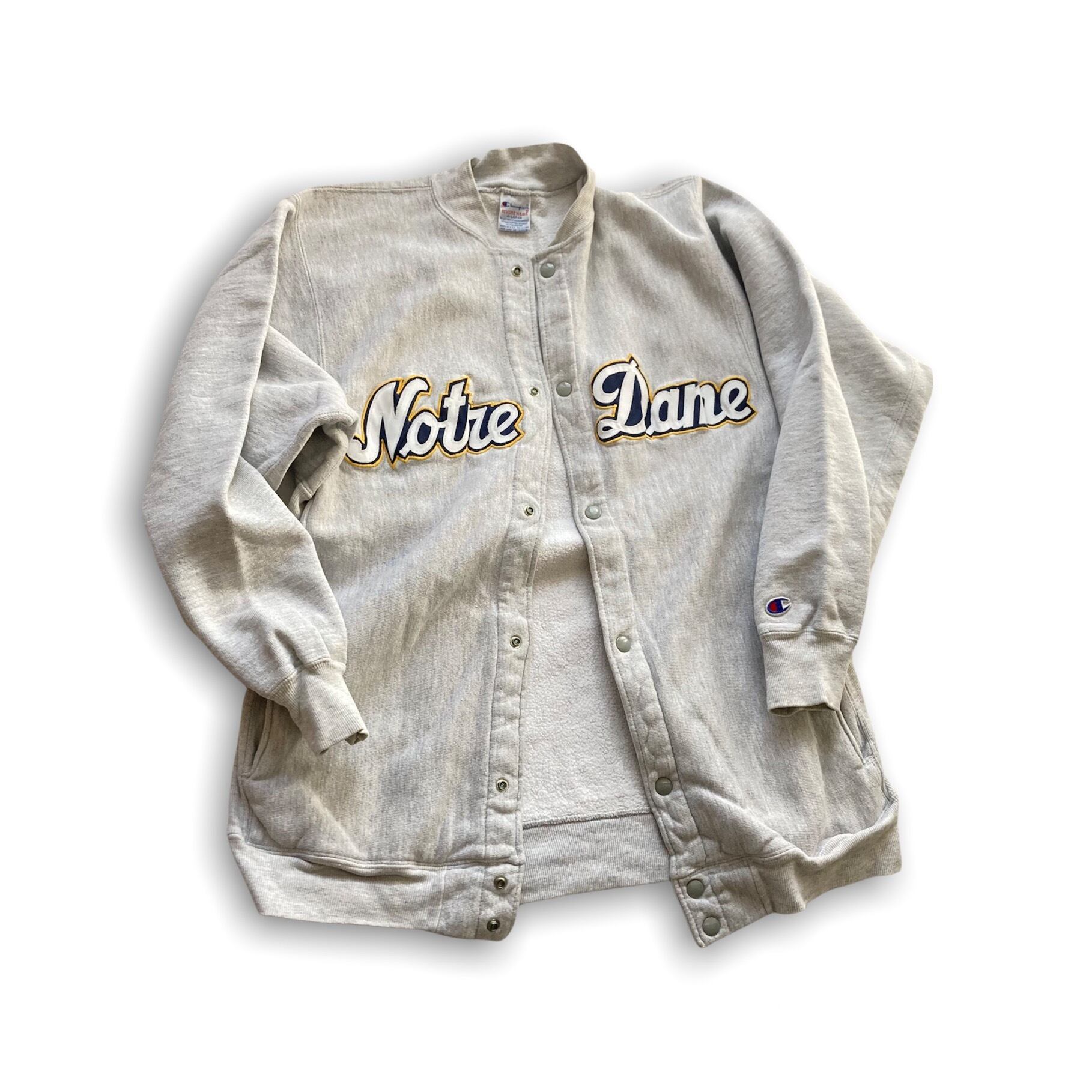 今回ご紹介するSnap Cardiganは、胸のNotre Dameのタックルツイルが特徴です。
