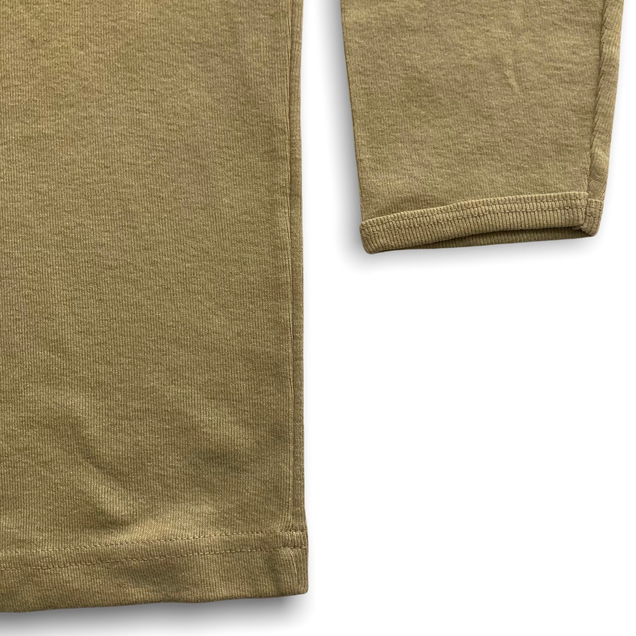 平置き採寸の数値上は、アメリカサイズの表記Lサイズとして小さめな印象ですが、リブ編みなので横方向へ伸縮する為、着心地は抜群です。