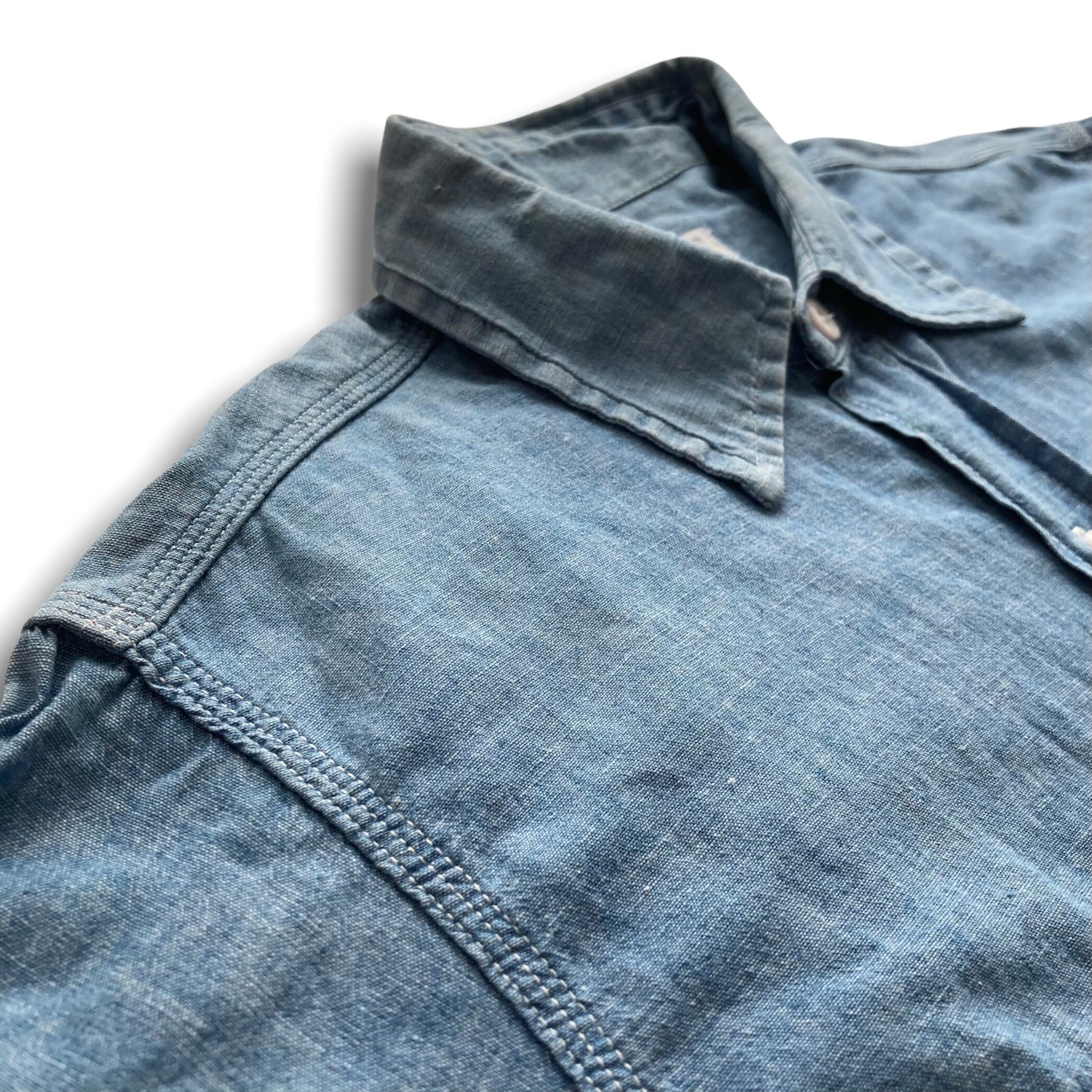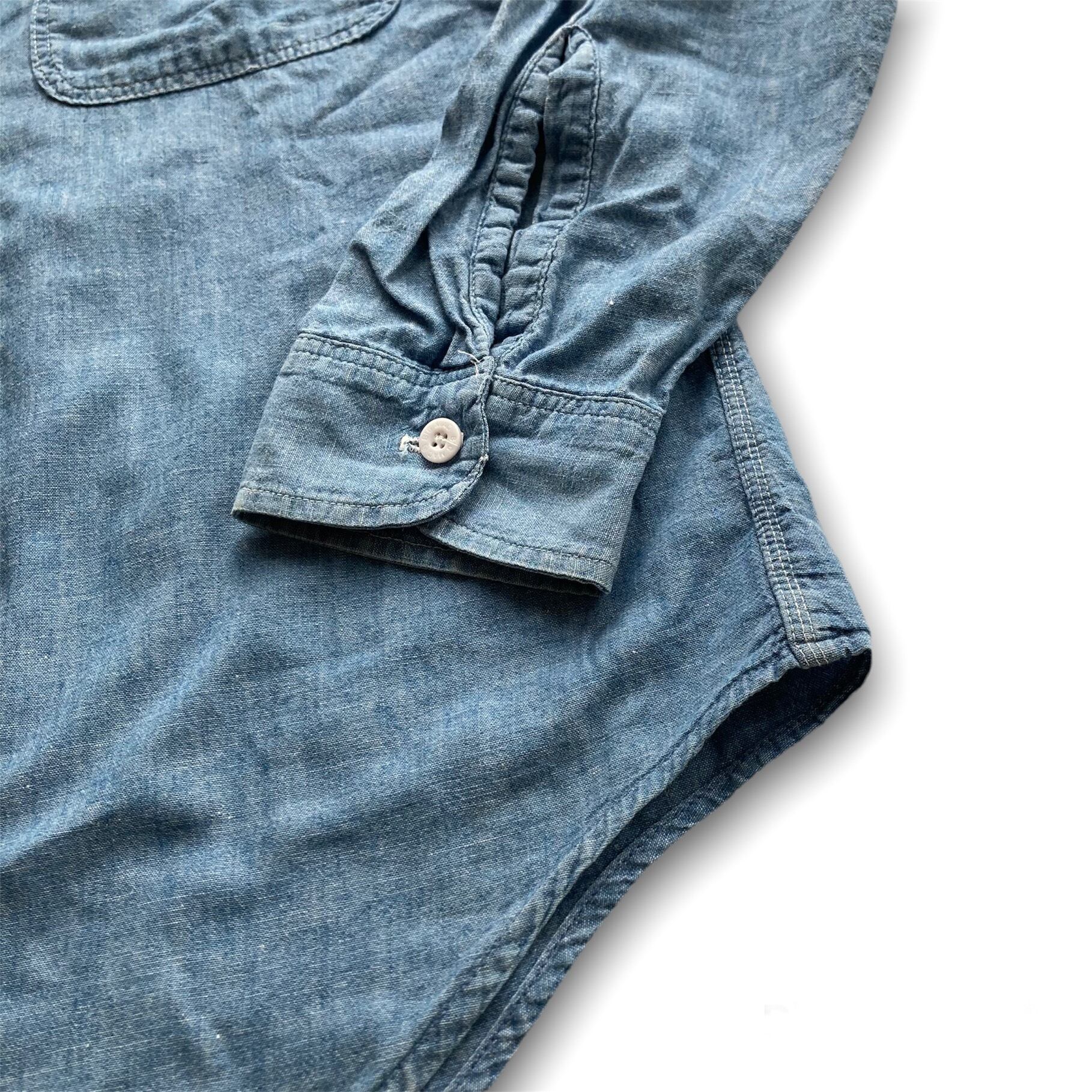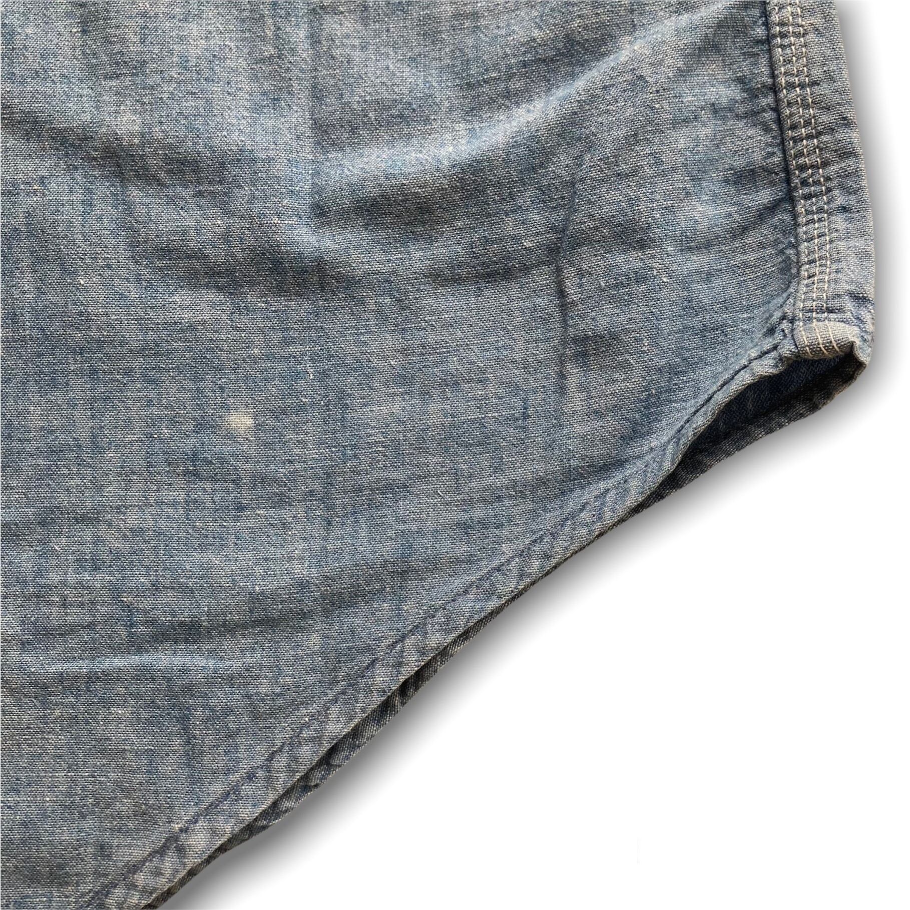 当時のシャンブレー生地は、ヴィンテージデニムと同様に不均一な糸で織り上げる為、生地に凹凸があり濃淡がある色落ちをします。