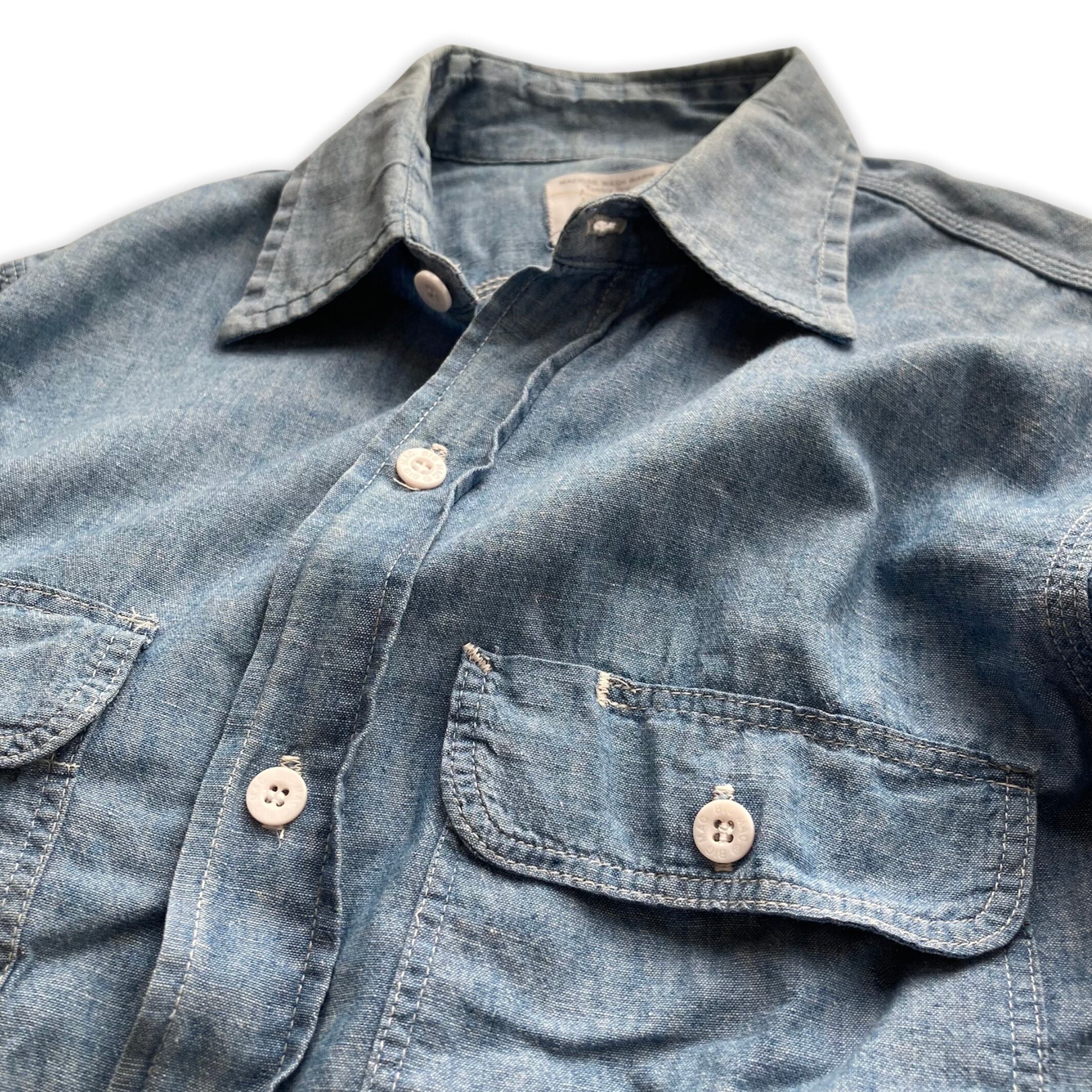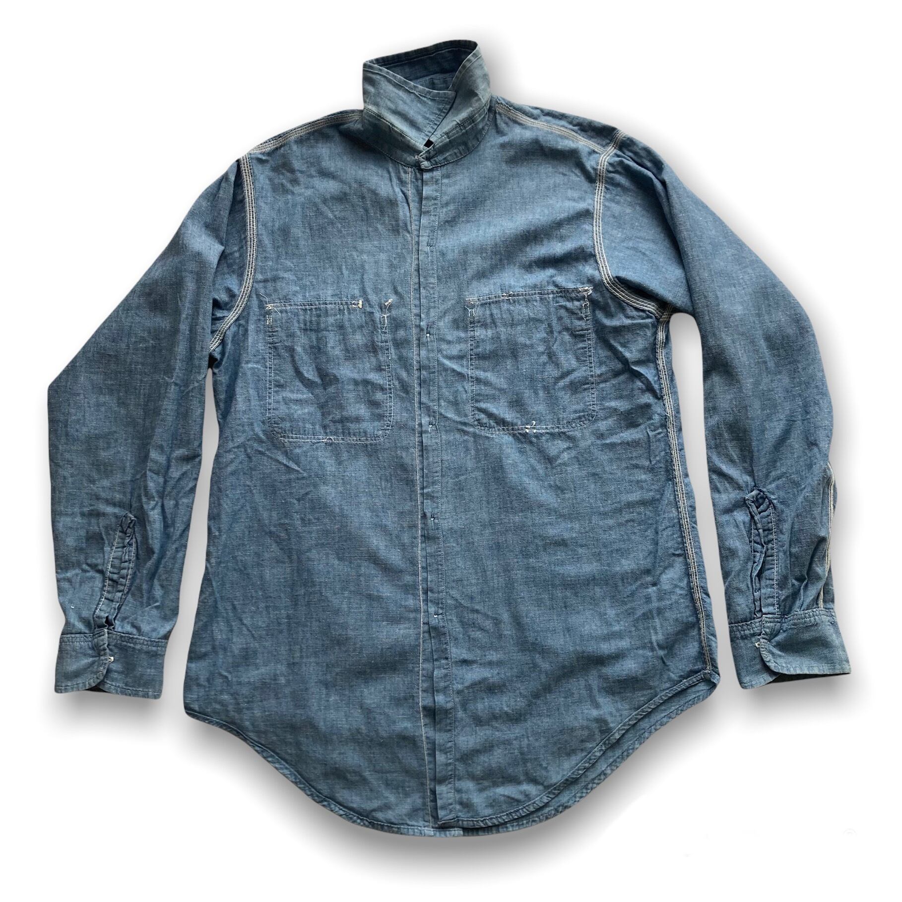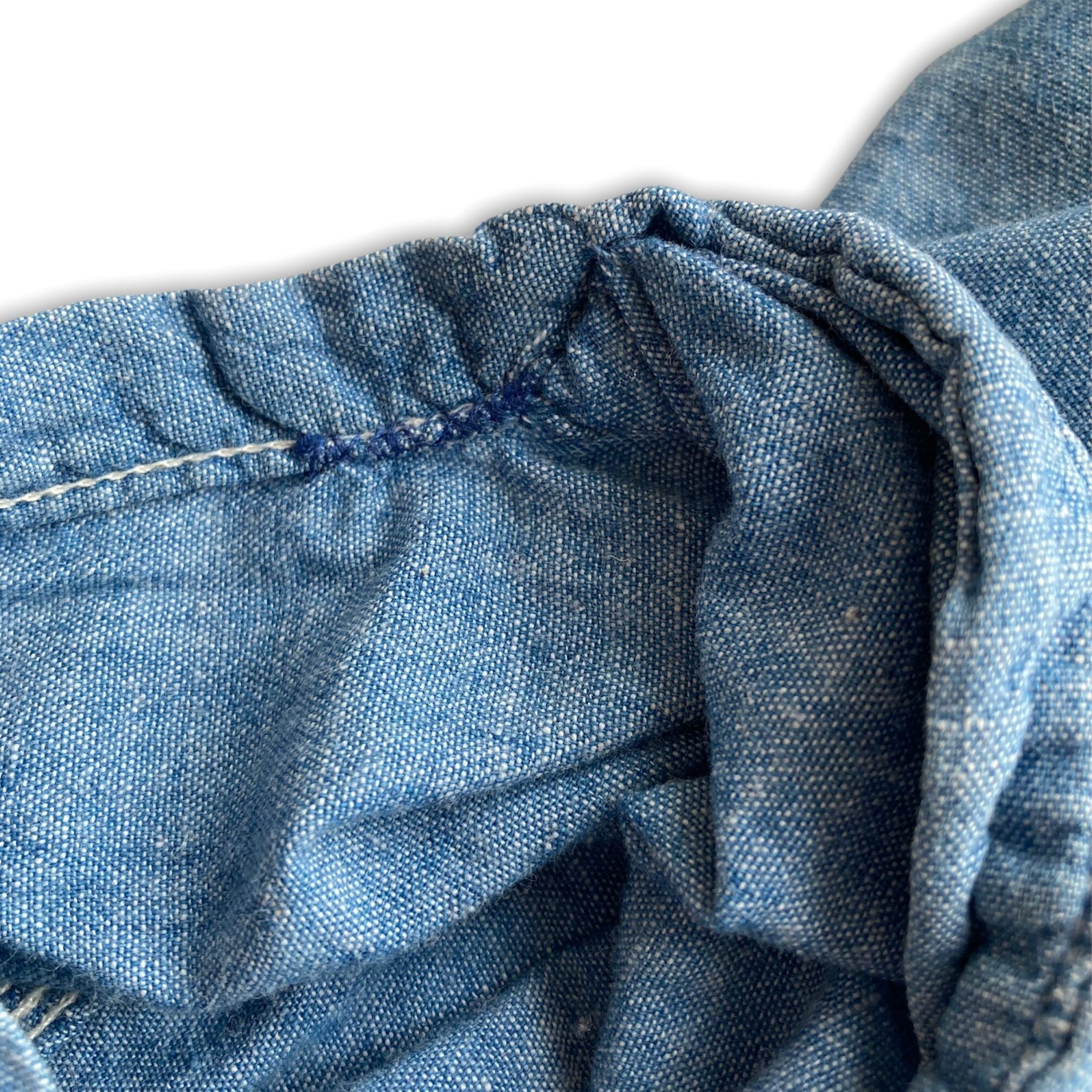 当時のシャンブレー生地は、ヴィンテージデニムと同様に不均一な糸で織り上げる為、生地に凹凸があり濃淡がある色落ちをします。