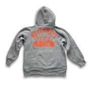 今回ご紹介するダブルフェイスプルオーバーフーディの特徴は、背中のバックプリントです。