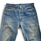 そして、この頃に生産された501の古着を見ると、ヒゲも出て濃淡があり、薄っすら縦落ちさえしている良き雰囲気の501と、全体的にシラっちゃけるデニムで正直、雰囲気が無い色落ちの501を見かけます。