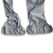 ポケットにリステッチと前身頃右裾にパッチによるリペアがあります。