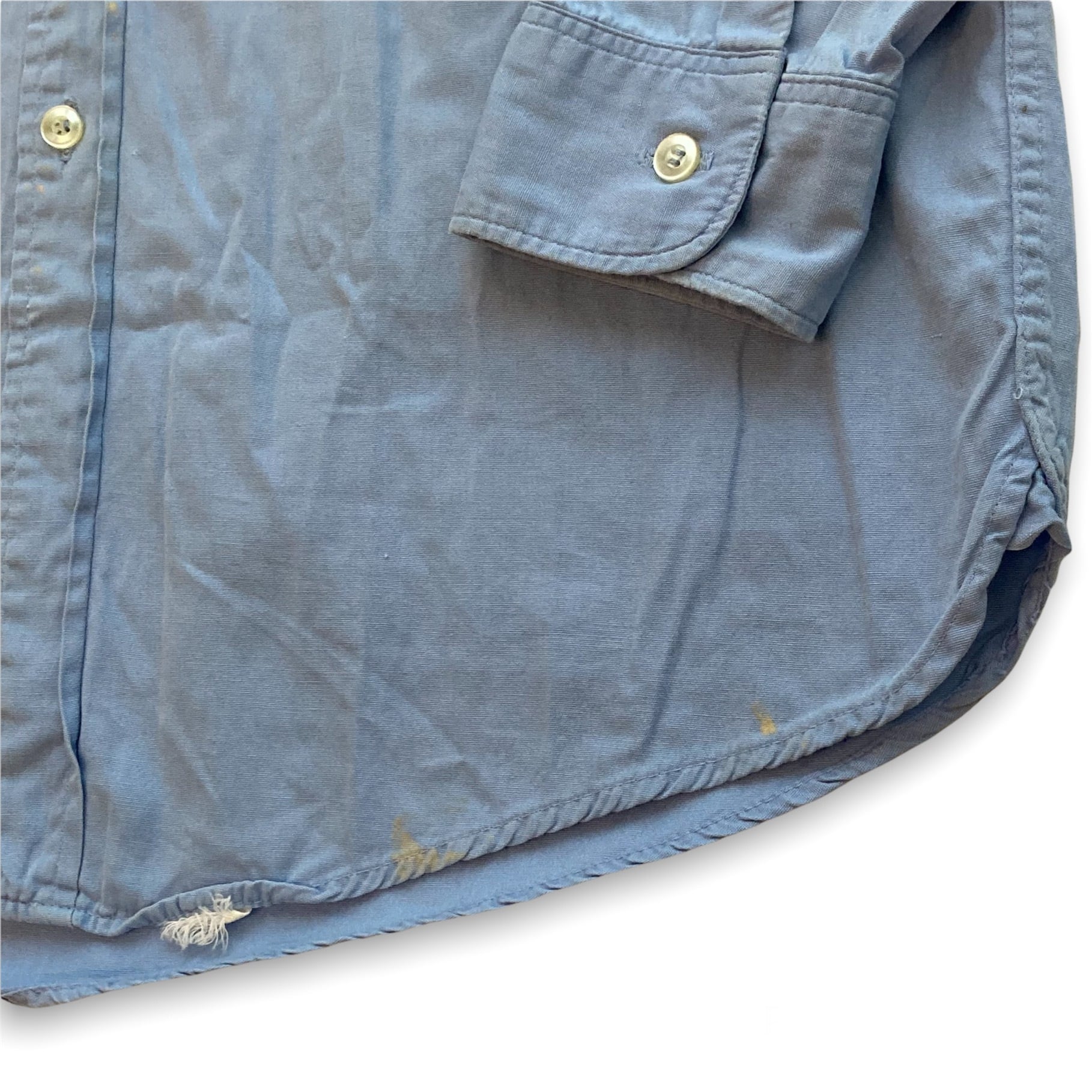 決して良いコンディションとは言えませんが、雰囲気があるワークシャツをお探しの方で中古品にご理解のある方、サイズが合う方にとてもオススメです。