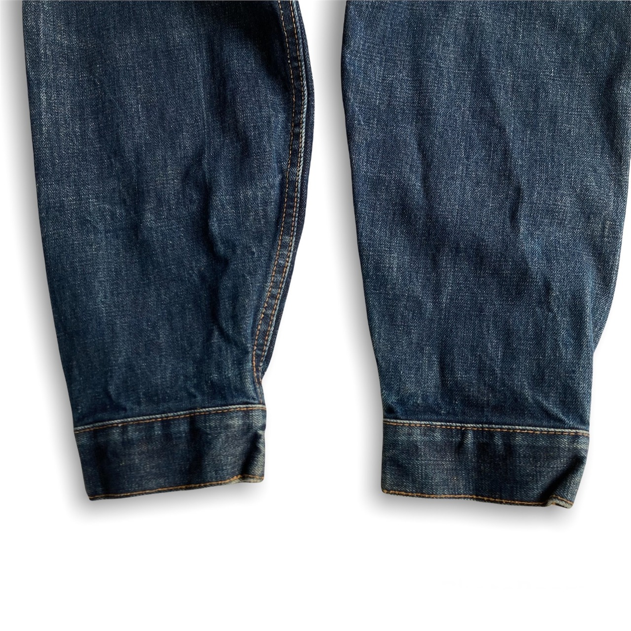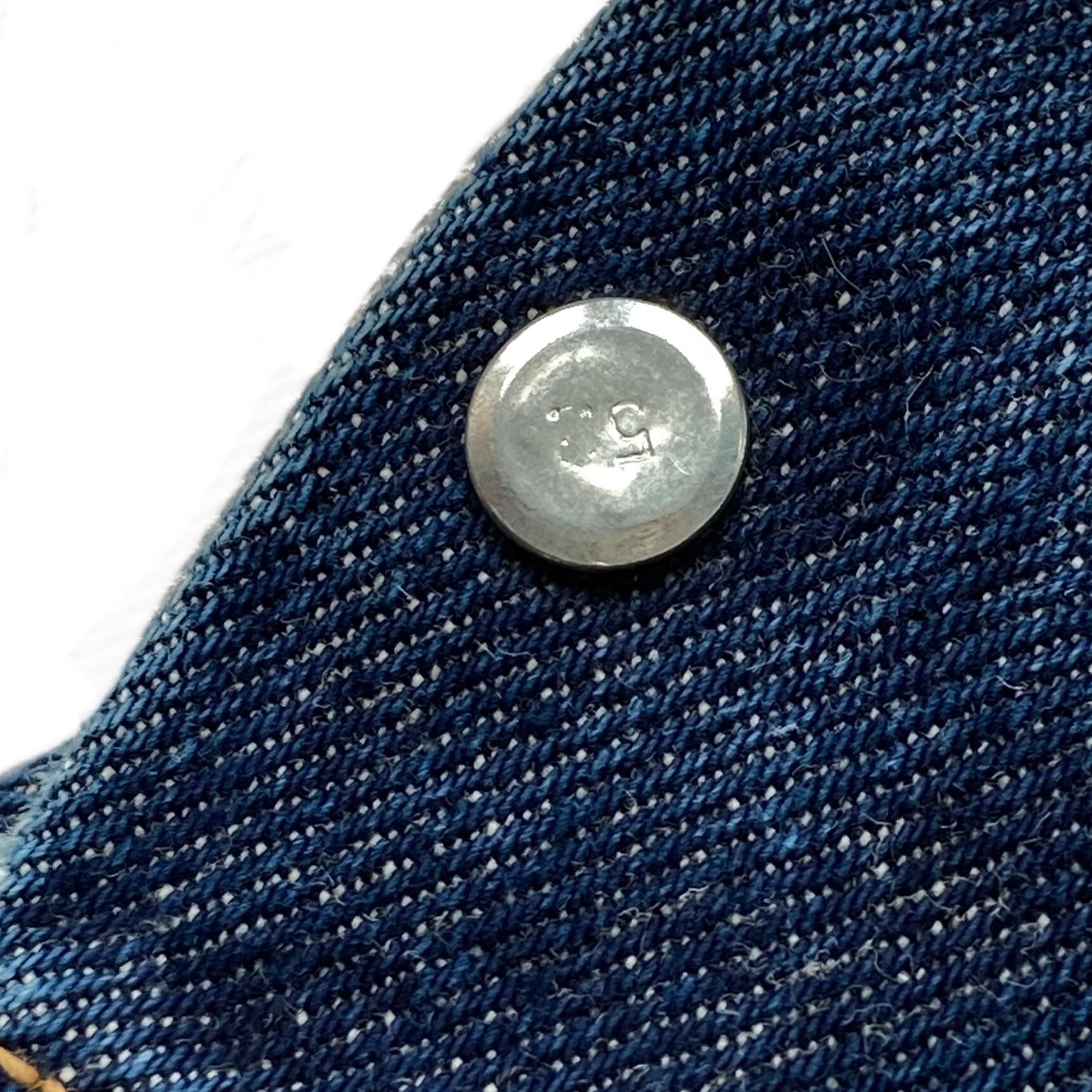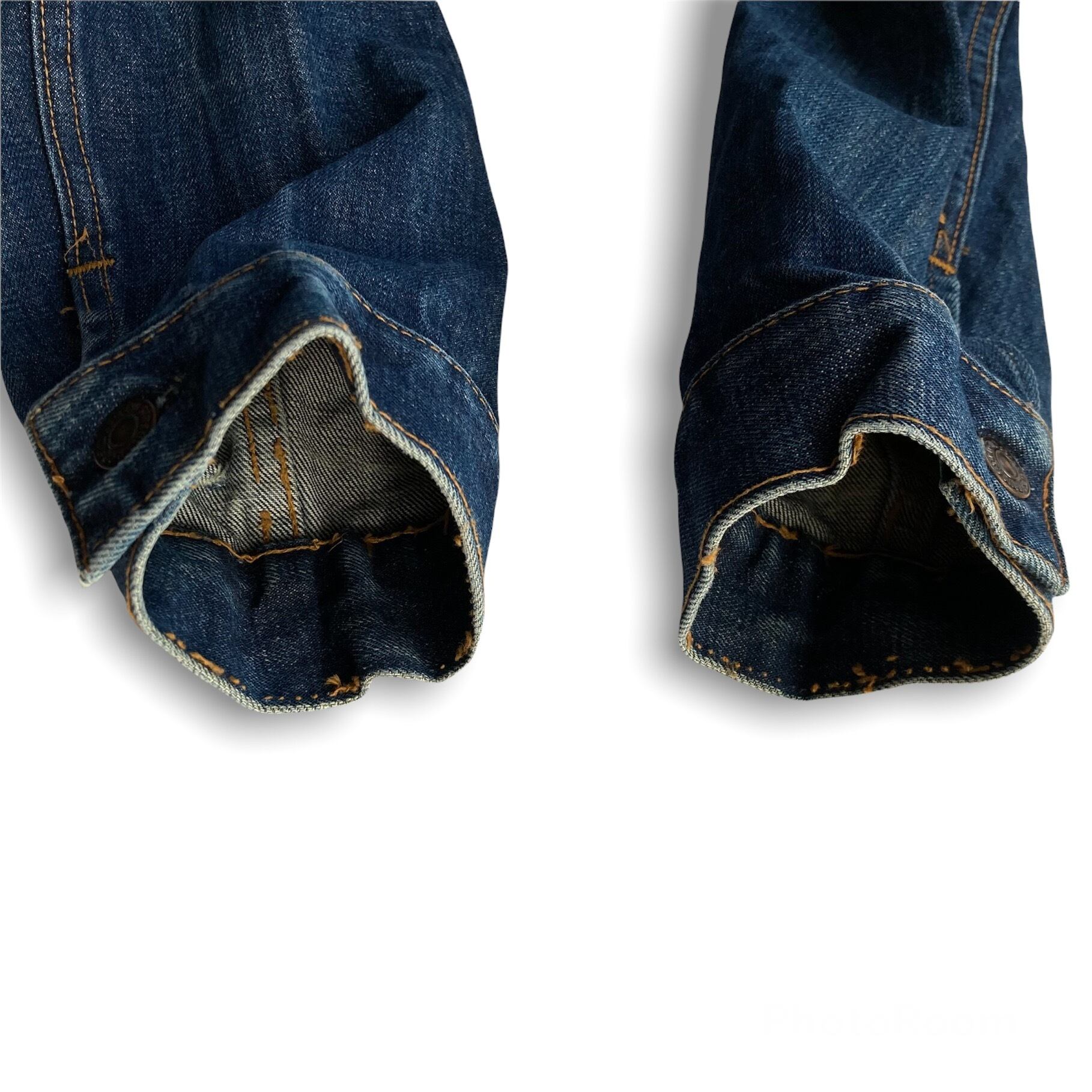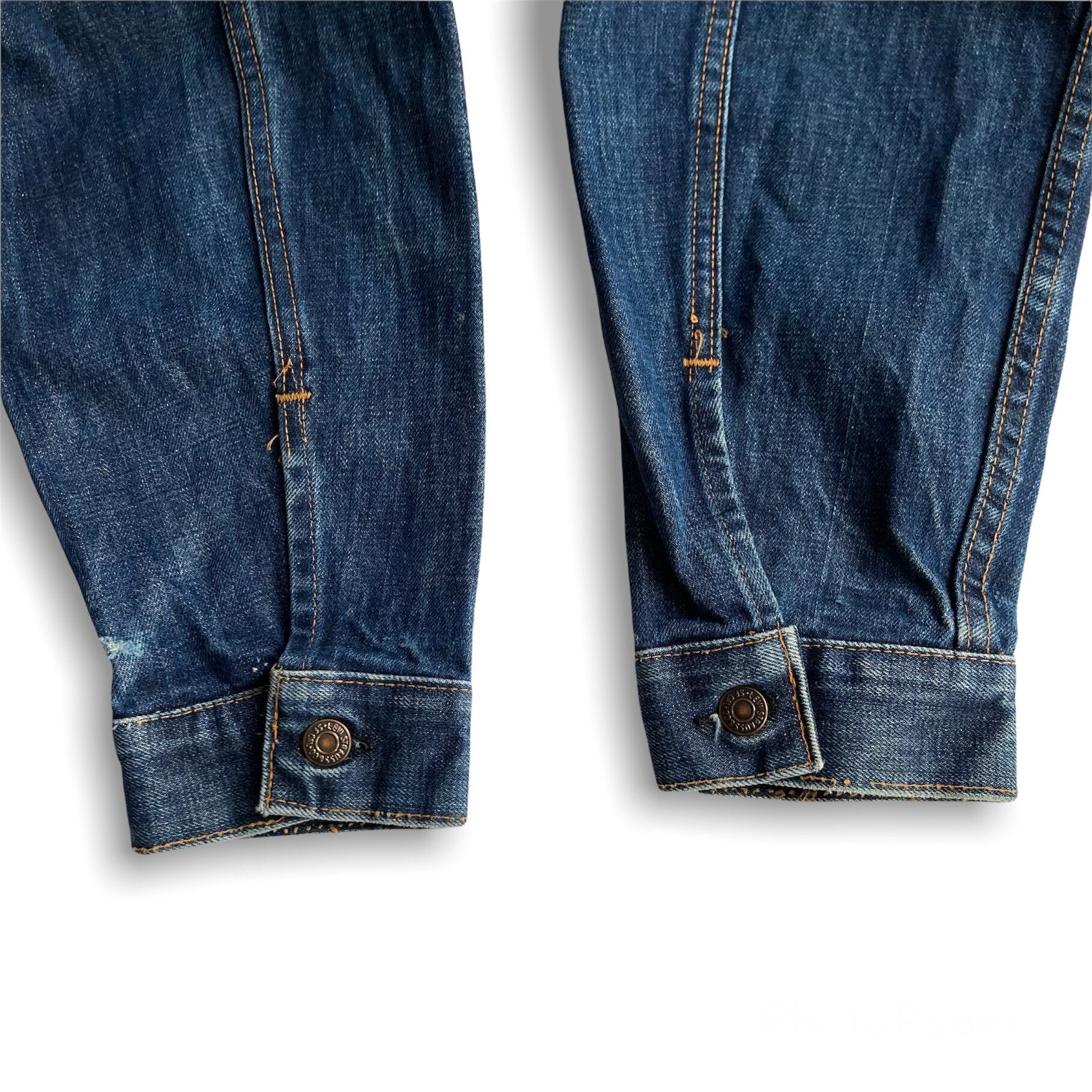 古着のデニムジャケットに良く見られる襟や袖口の擦り切れなどの大きなダメージはありませんが、右カフの上あたりに擦り切れ跡がありますが、着用に支障はない程度だと思います。