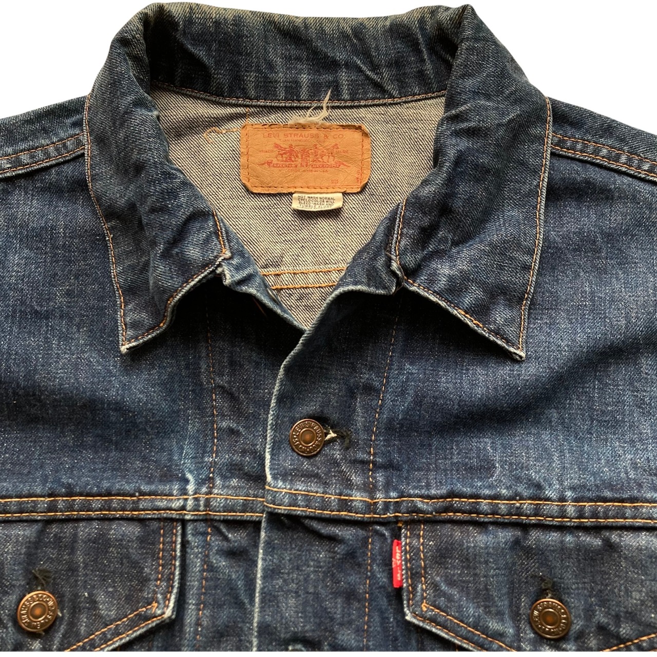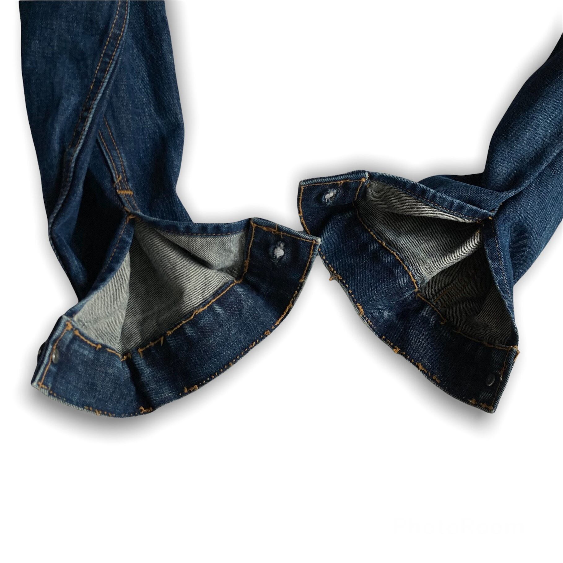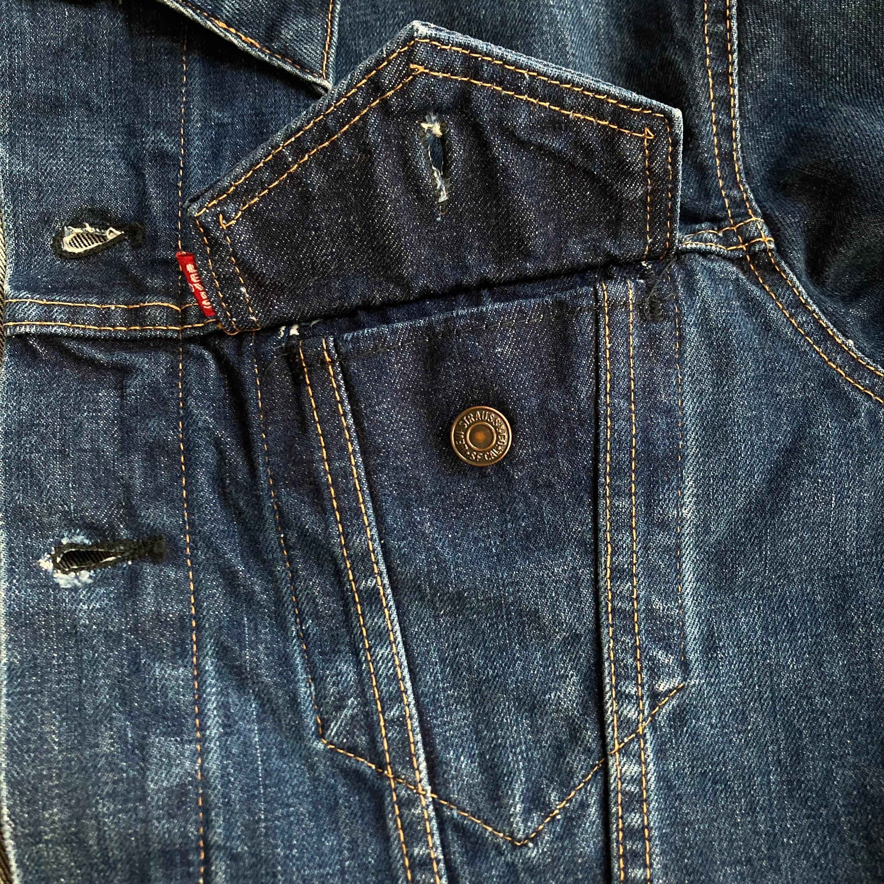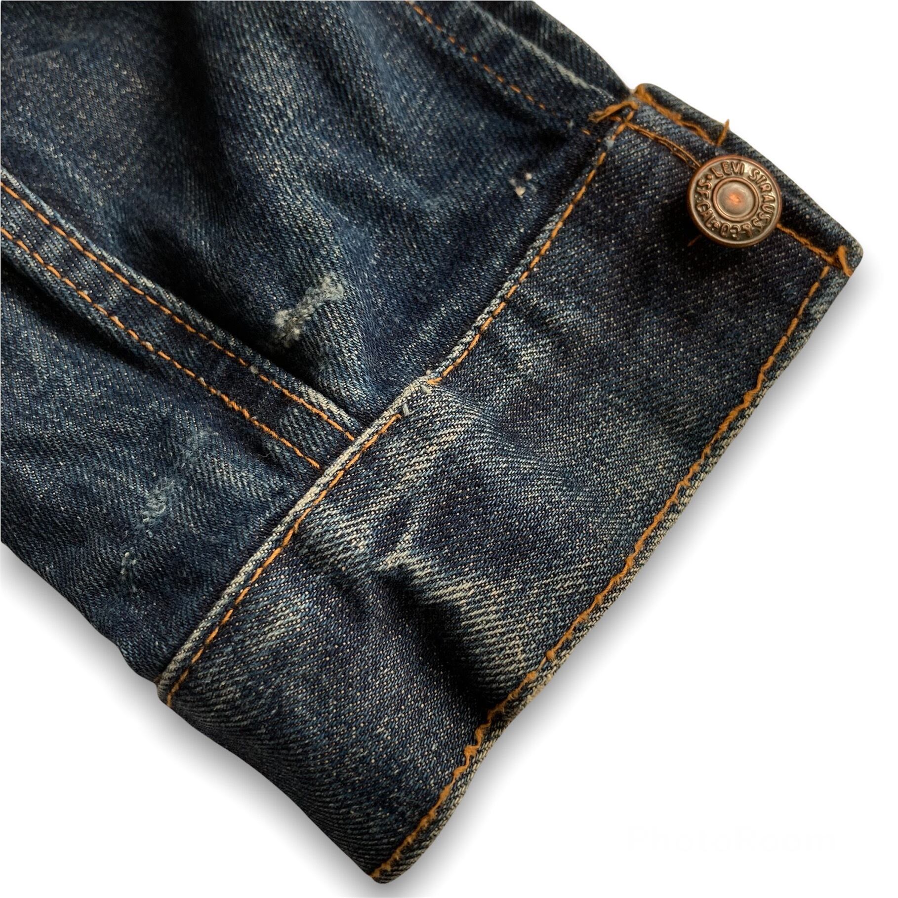 古着のデニムジャケットに良く見られる襟や袖口の擦り切れなどの大きなダメージはありませんが、右カフの上あたりに擦り切れ跡がありますが、着用に支障はない程度だと思います。