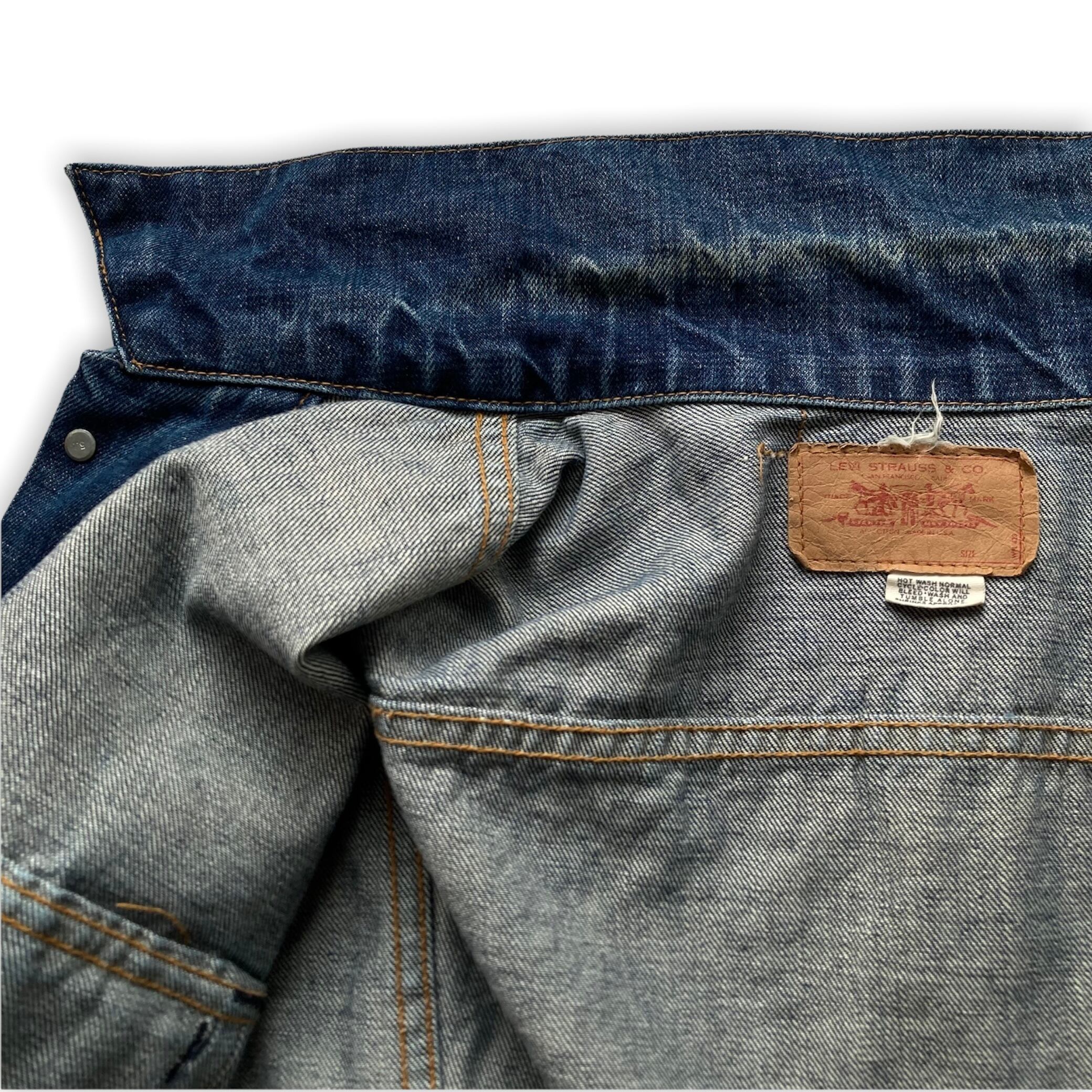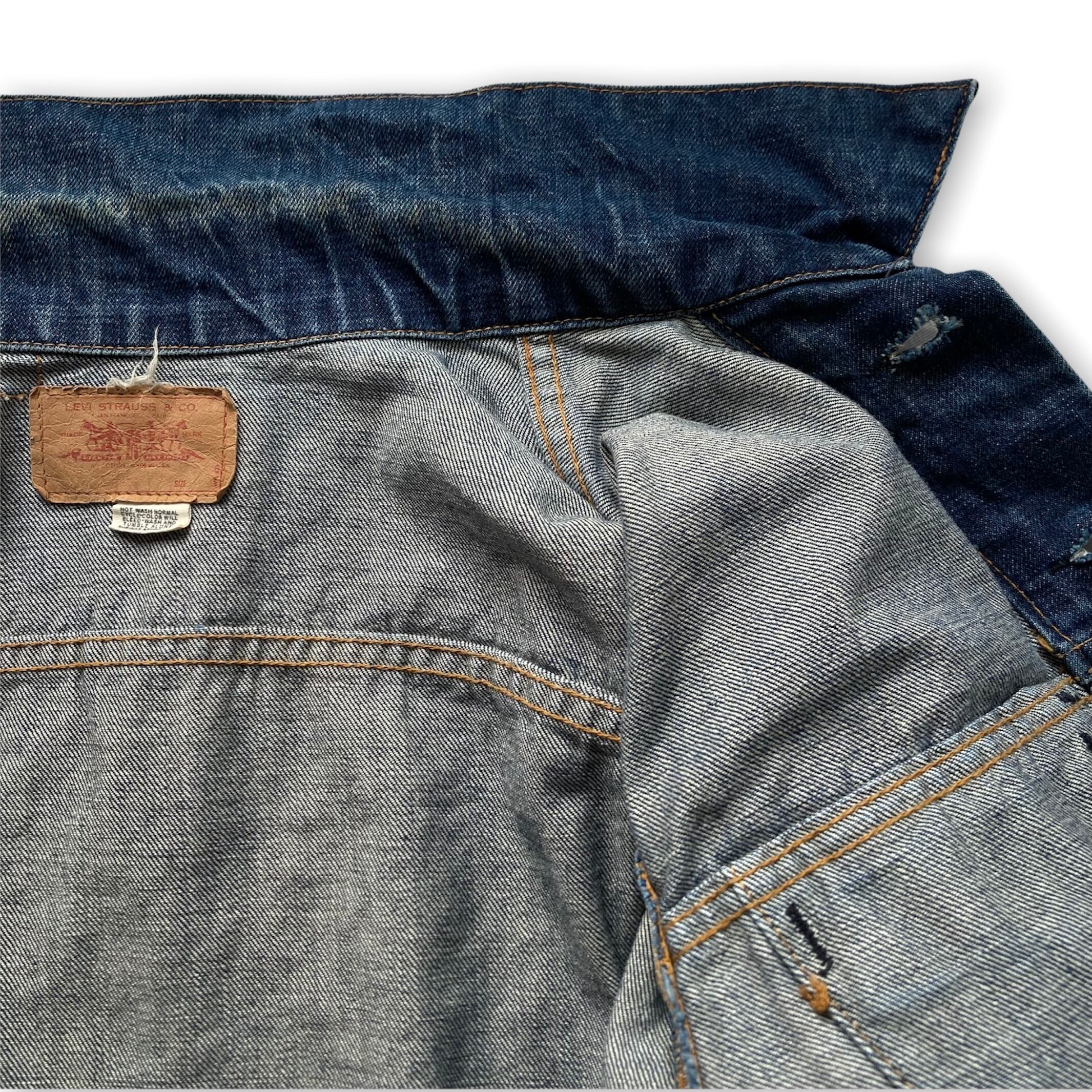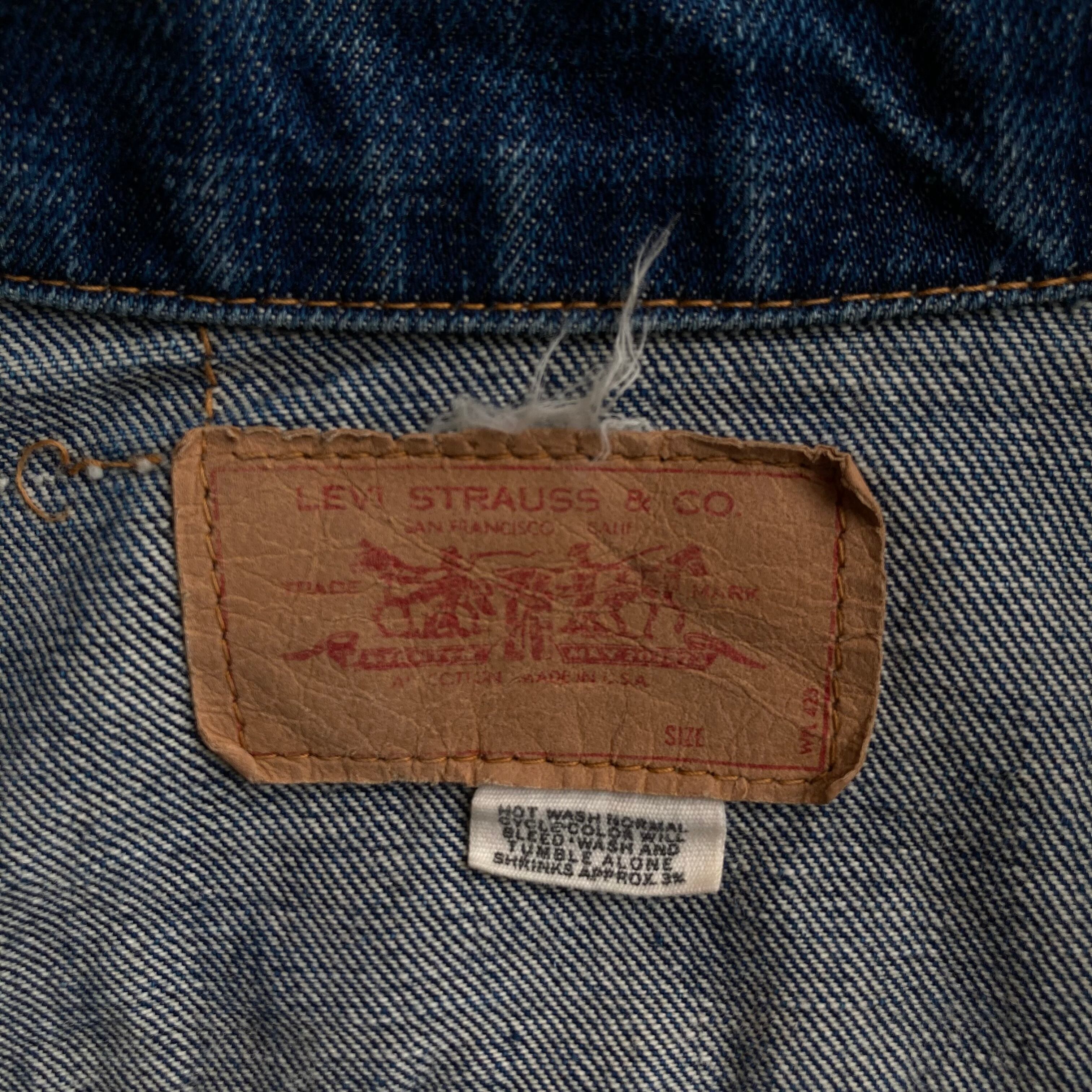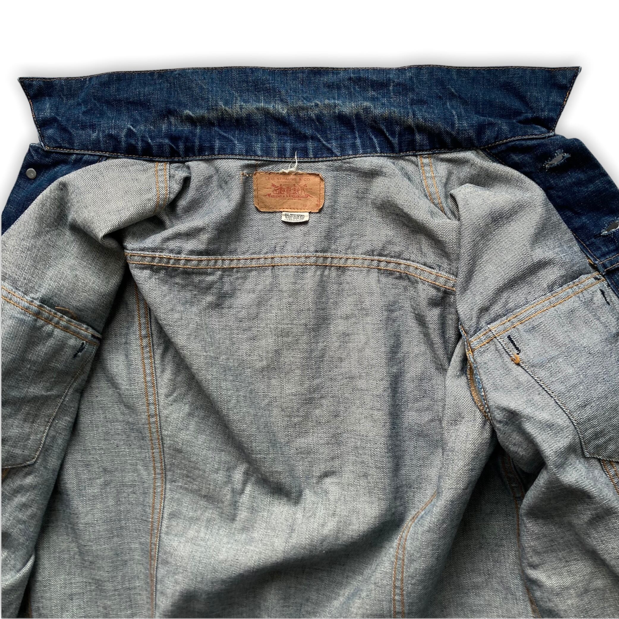 古着のデニムジャケットに良く見られる襟や袖口の擦り切れなどの大きなダメージはありませんが、右カフの上あたりに擦り切れ跡がありますが、着用に支障はない程度だと思います。