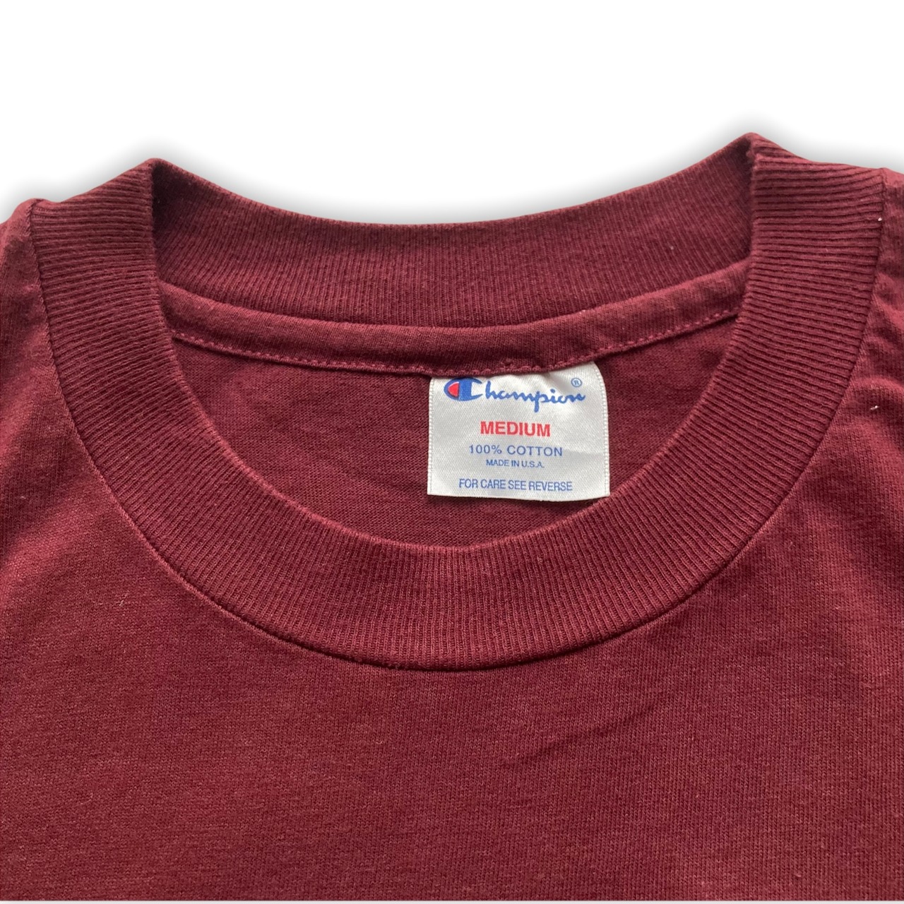 パッと見た目には普通ですが、マニアックなTシャツで、HANES製のChampionだと思います。