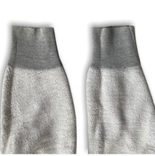 CuffとHemのリブも4 needles Flat seamで丁寧に縫い付けられていて、Hemのリブは、輪編みされた継ぎ目がないリブを使用しています。