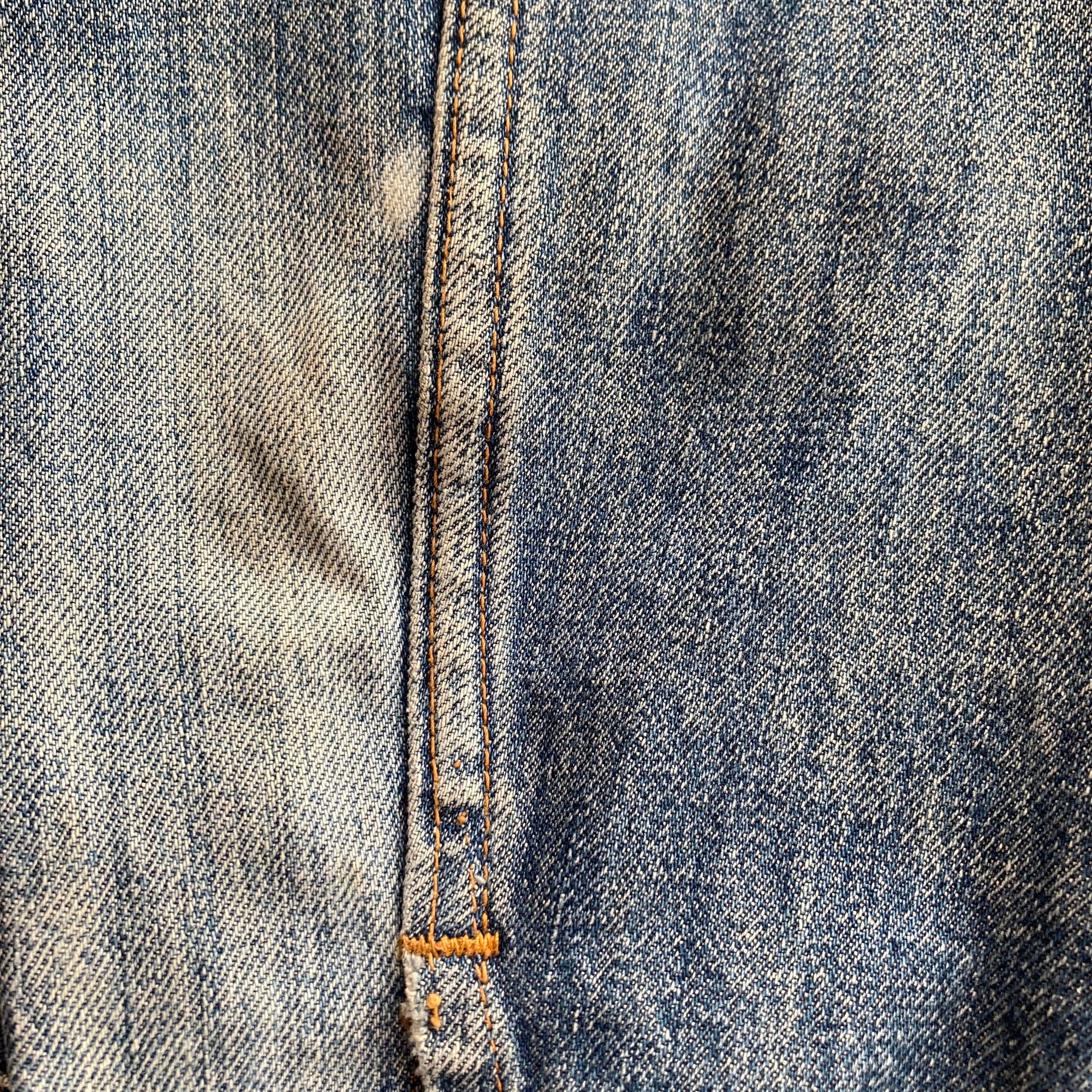 その他、デニムの全体的な色落ち加減を見ると、それなりに着用されてきたと思われますが、その割に目立った致命的な汚れは無く、綺麗な印象が持てる状態です。