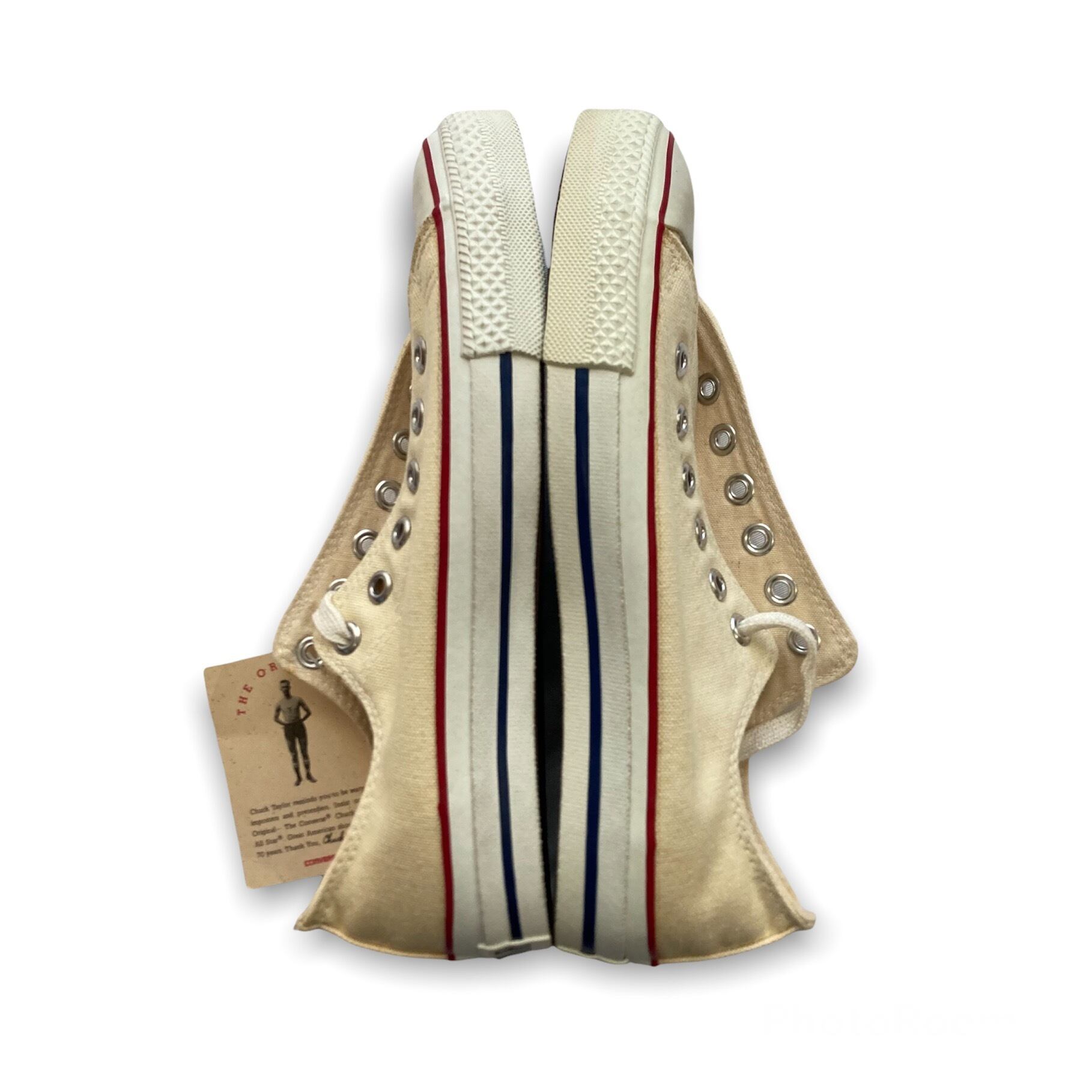 今回ご紹介するオールスターは、1990年代初期頃のシューズボックスを使用していますが、シューレースは、90年代中期以降のナイロン製になる前の80年代のオールスターに使用していた古いタイプのシューレースが付属されているので、80年代から90年代にかけて移行期のオールスターだと思います。