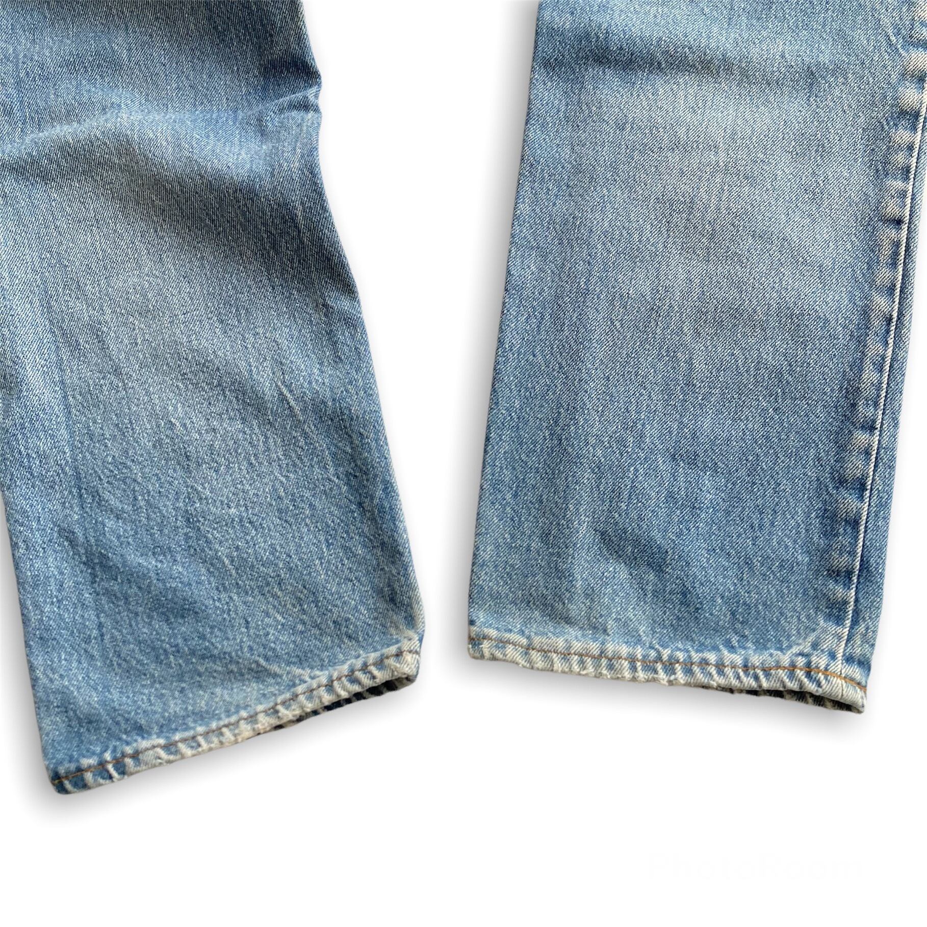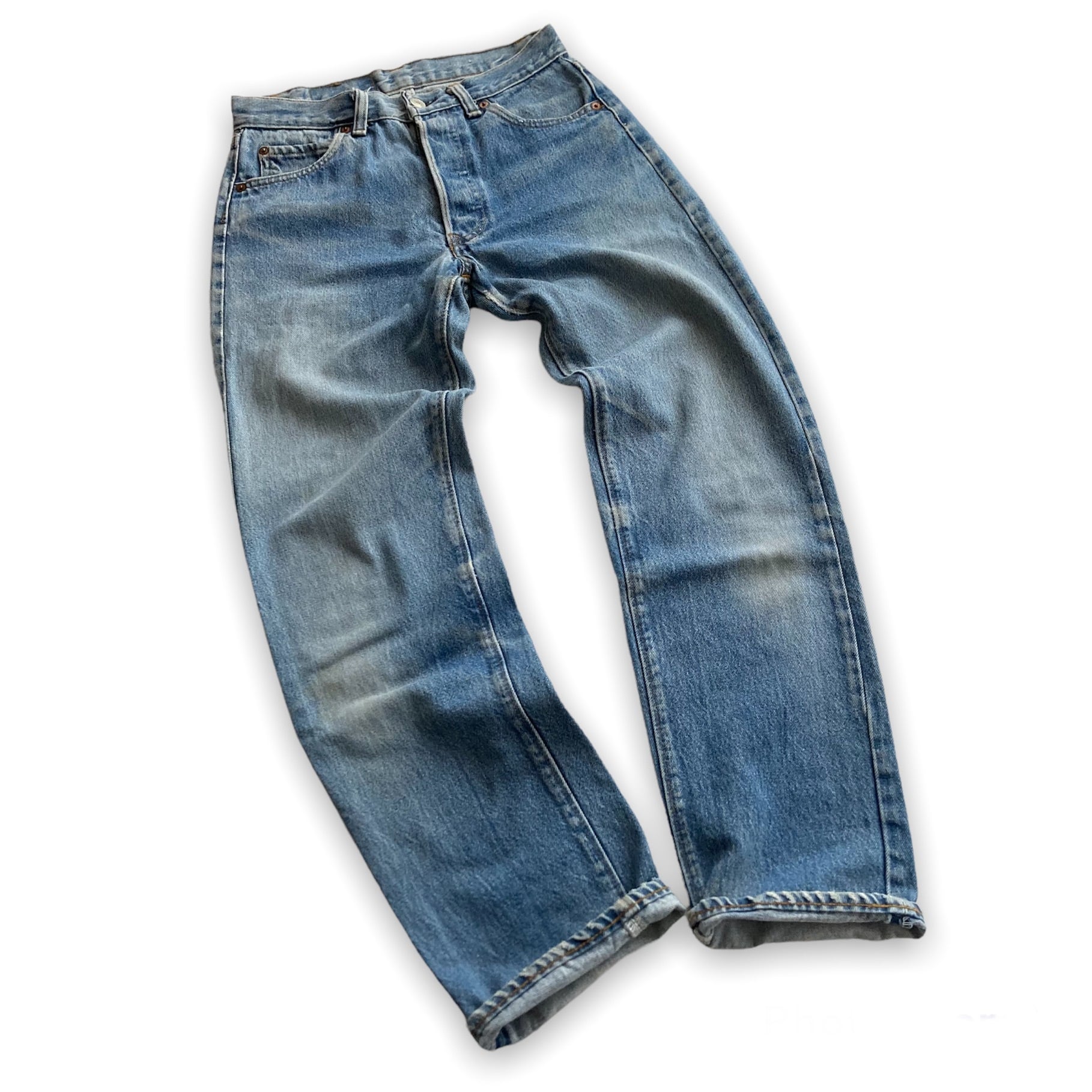 腿から膝にかけて、薄っすらとした汚れがある程度で、大きなダメージやリペア跡、致命的な汚れは無く、一般的なVintageの501として良好だと思います。