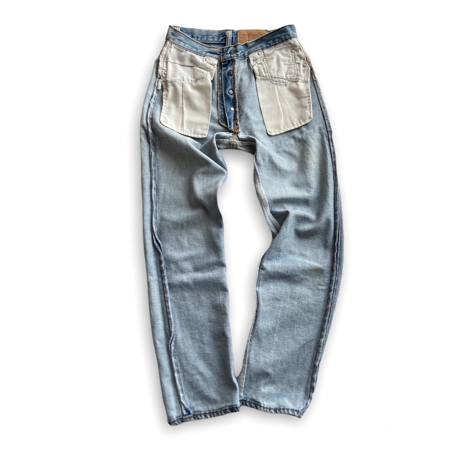 色落ちも初期の広幅デニム独特な柔らかいタテ落ちと綺麗なブルーが特徴で、この年代らしい良い色落ちだと思います。