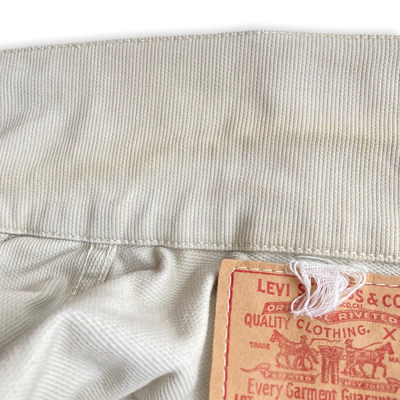 60年代に、それまで主流のブルーデニムをホワイトの素材に変えて登場したシリーズがホワイトリーバイスです。