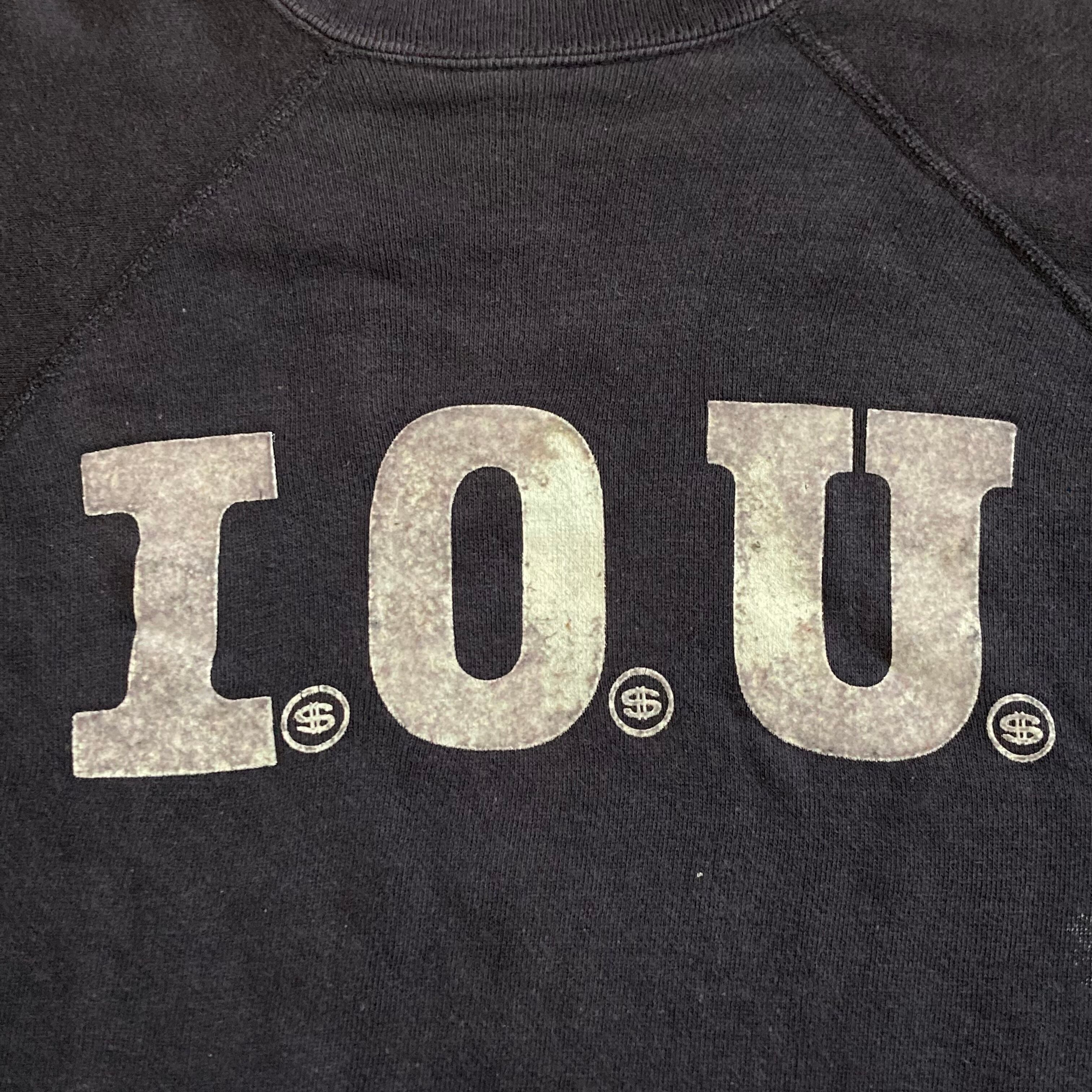 また、プリントのI.O.U.は、I owe youの略語で、借用書の意味だと思いますが、ドットが$な所もアメリカンなジョークが効いています。