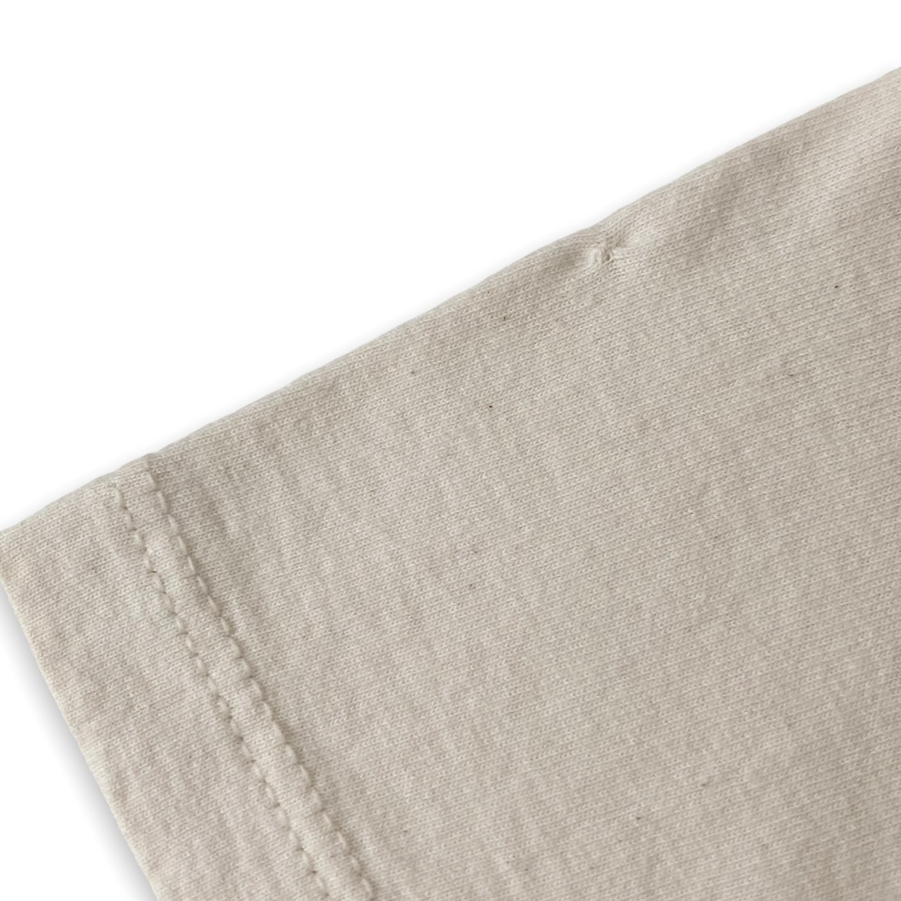 ボディは、Patagoniaの一部門であるBeneficial T's を使用しており、100% Organic CottonのTシャツを生産しているブランドで、筒状に編み立てた丸胴と呼ばれる生地を本体に使用しています。