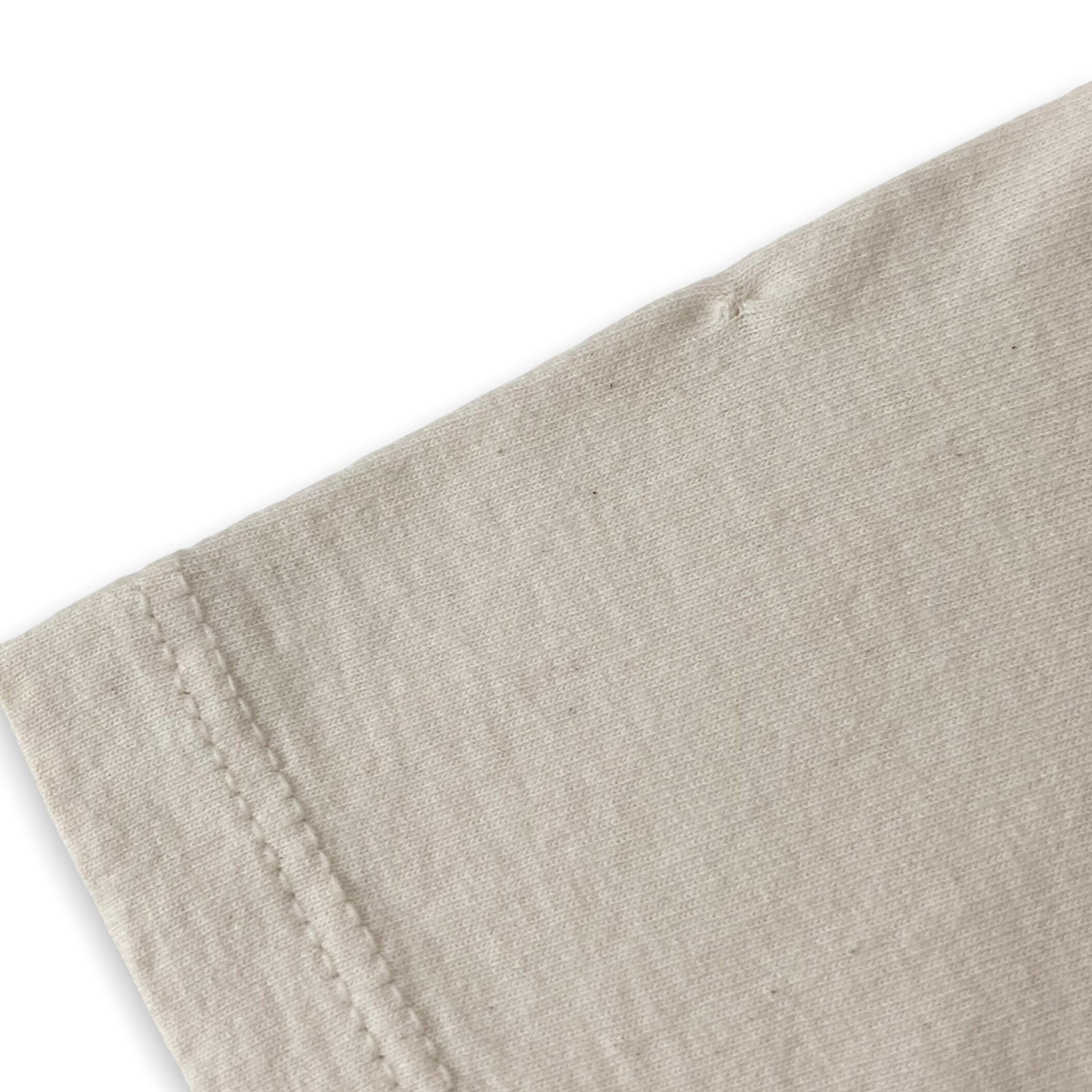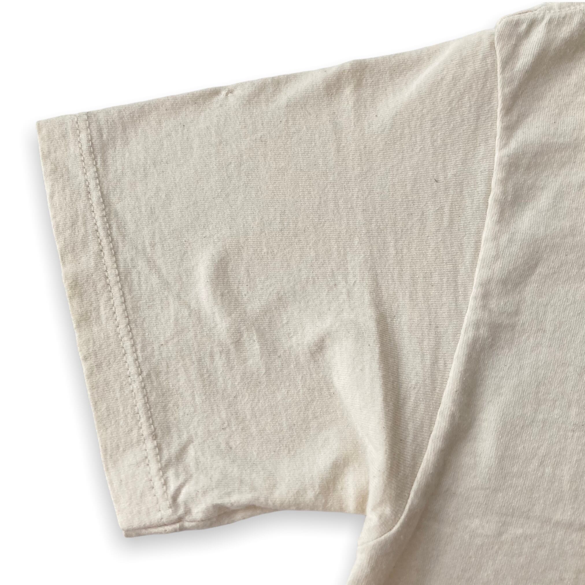 こちらと同年代の私物のBeneficial Tシャツを着てきた個人的な感想ですが、他ブランドのヘビーウェイトのTシャツと比べて、生地が薄いのにも関わらず、しなやかでとても丈夫な印象です。