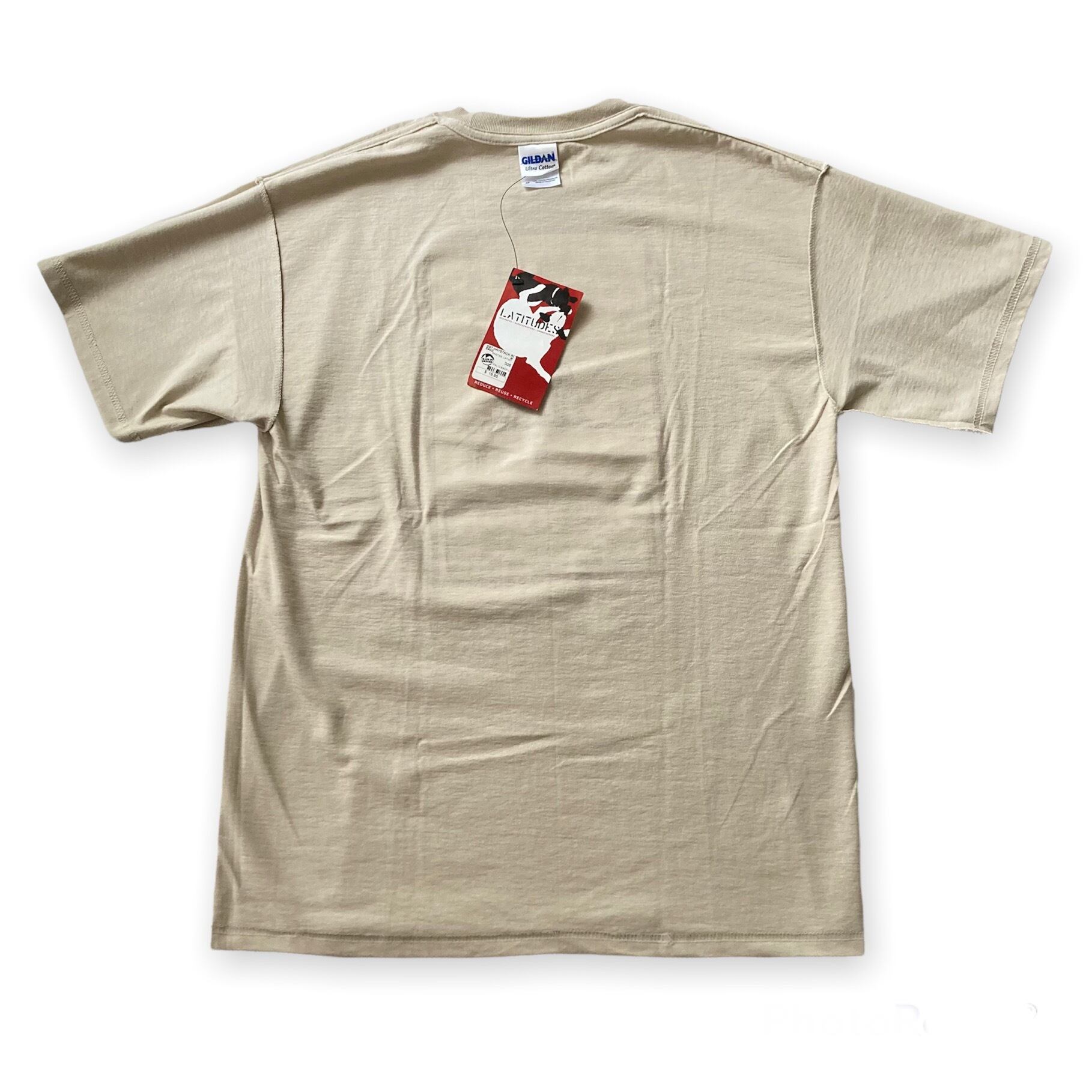 本体は、GILDAN社製のUltra CottonシリーズのTシャツで、HANES社のBeefy-Tと同等クラスの6oz 100% PRESHRUNK CottonのヘビーTシャツを使用しています。