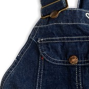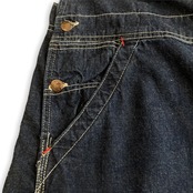 色残りが十分ある濃いインディゴが魅力で、これからヴィンテージデニムらしい色落ちが楽しめるオーバーオールです。