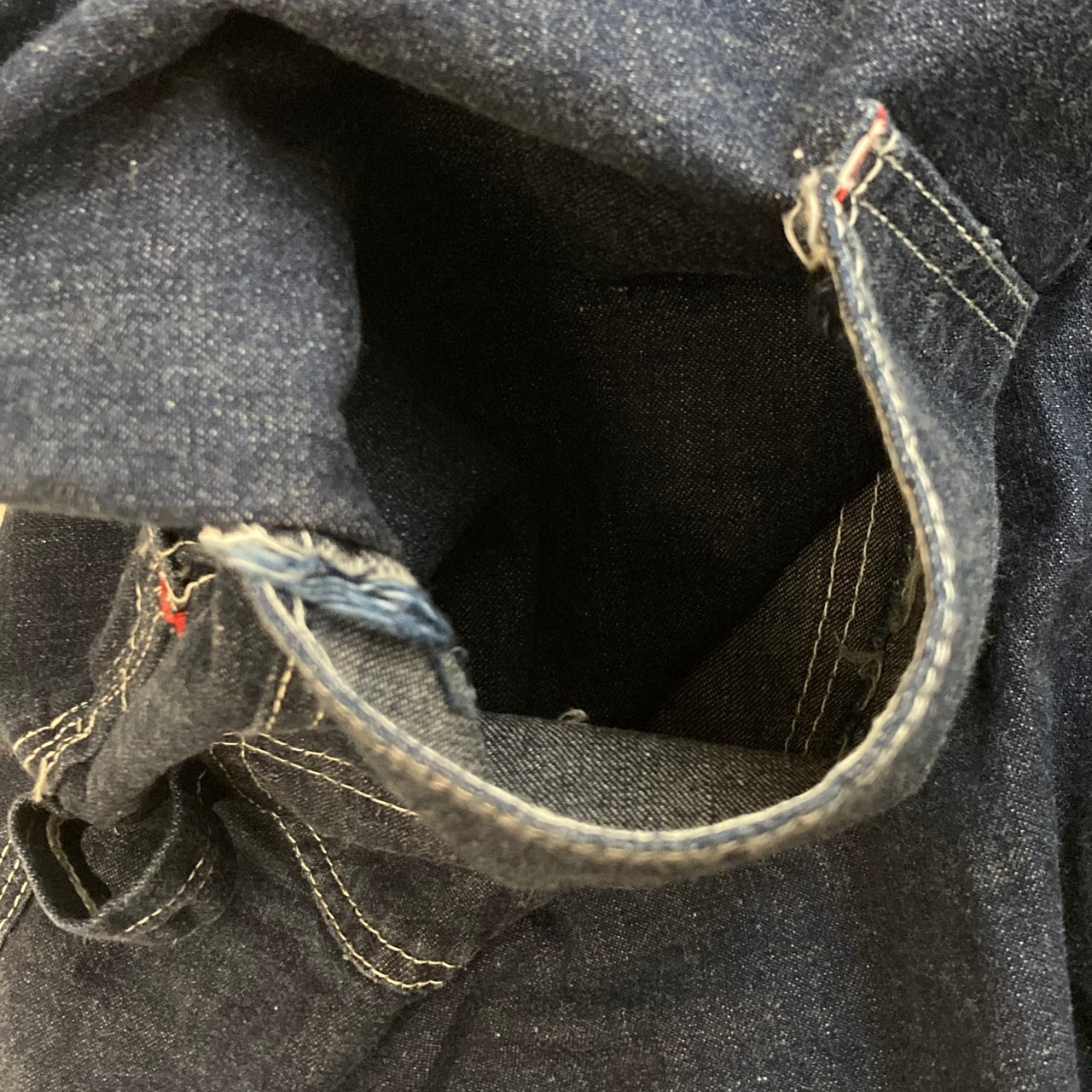 また、内股の縫い合わせ部分に縫い込みが浅い箇所がありますが、いずれも古着慣れしている方でしたら問題ない範囲だと思います。