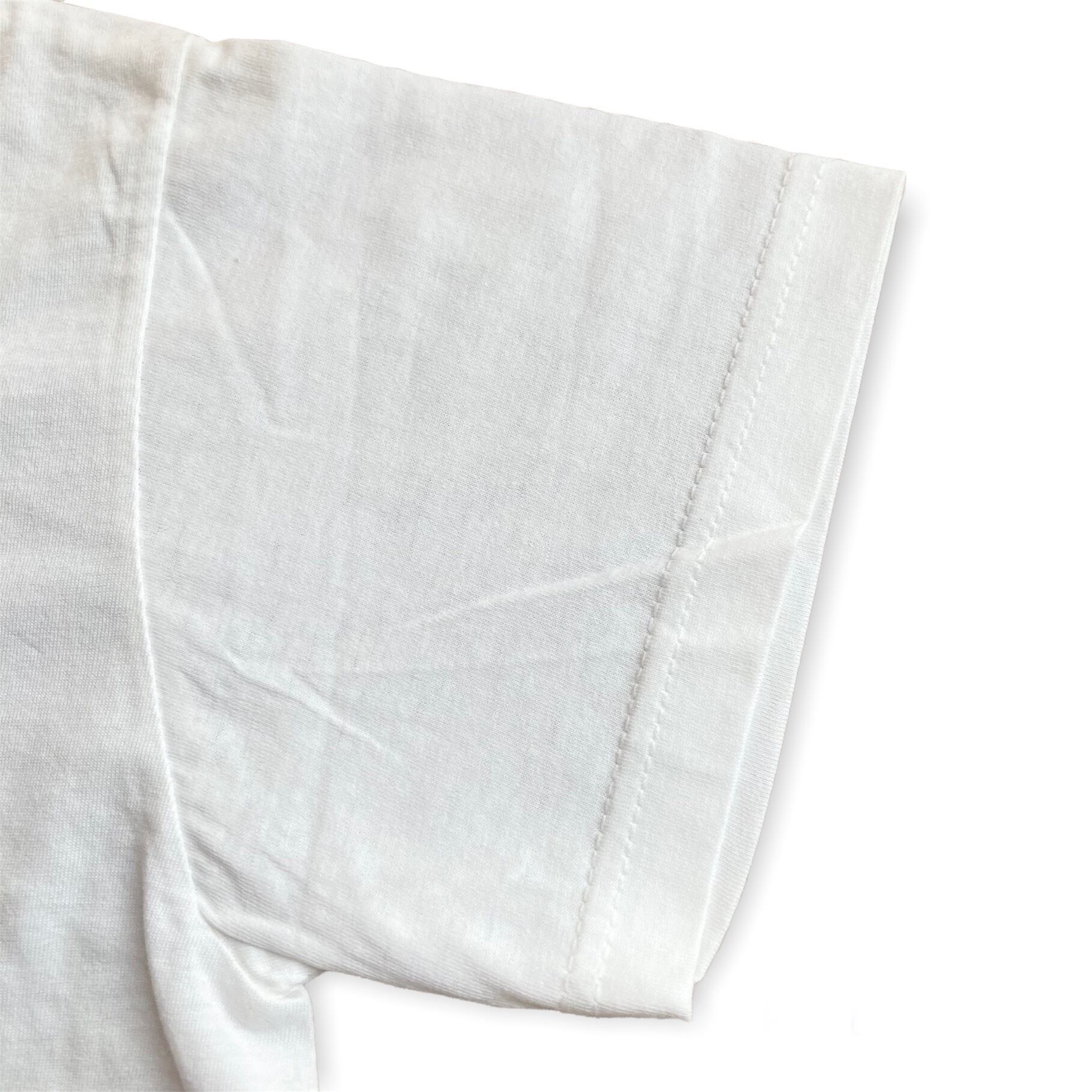 シンプルで丈夫な縫製が特徴で、ネックリブはOverlock Stitchで縫い付け、袖口と裾はCover Stitchで丁寧に縫製しています。