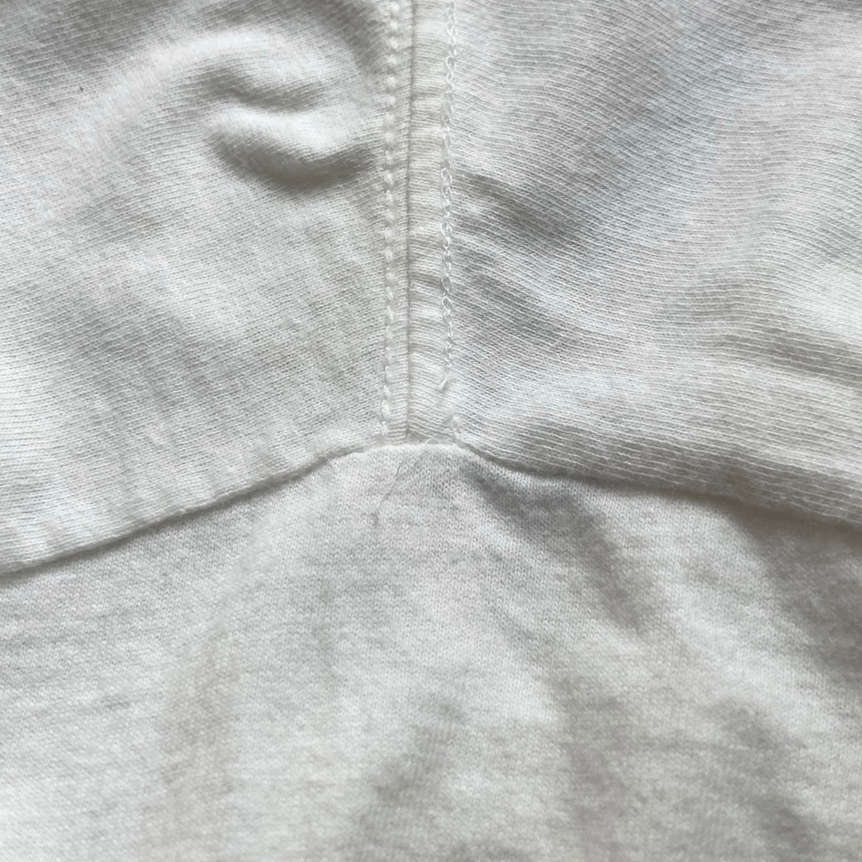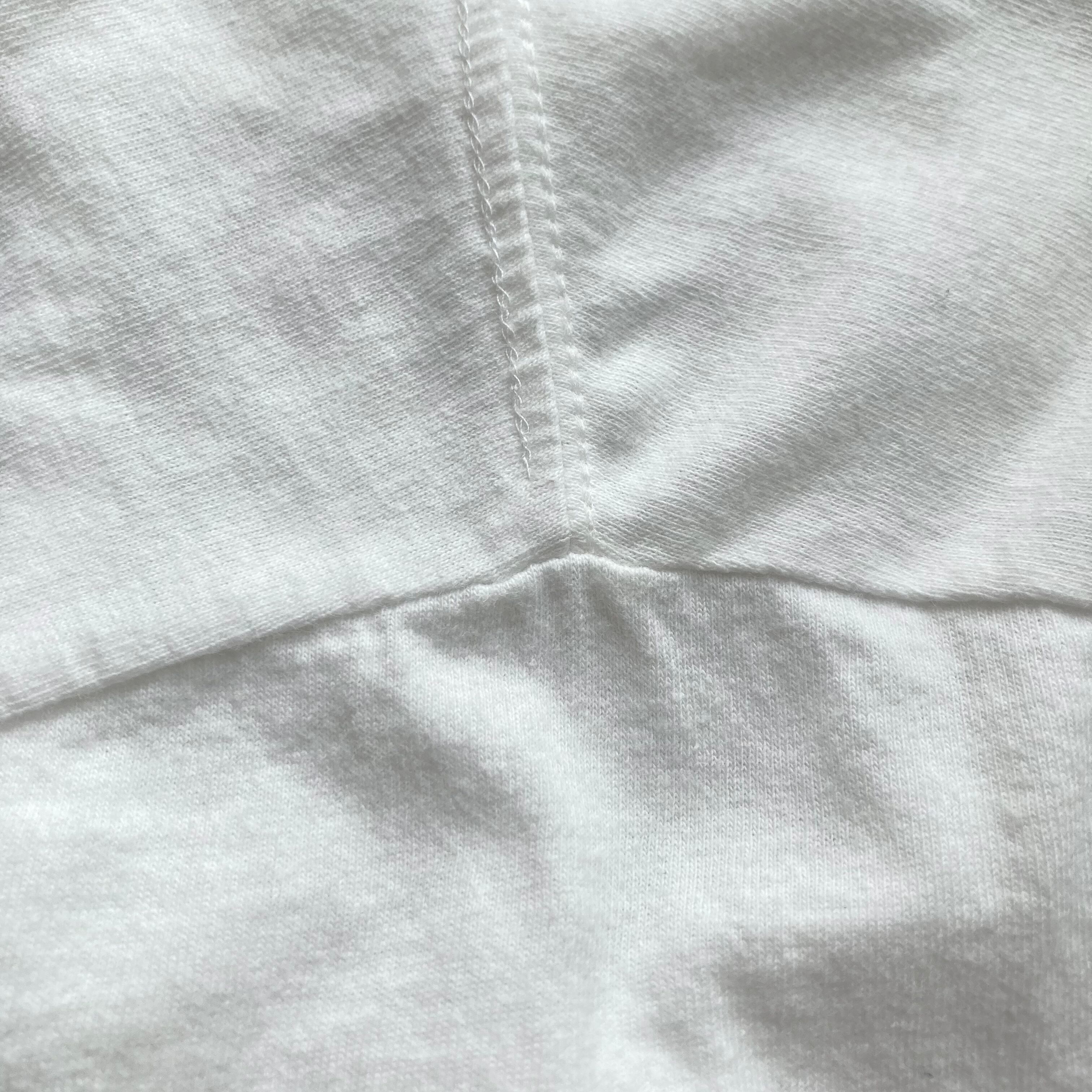 こちらと同年代の私物のBeneficial Tシャツを着てきた個人的な感想ですが、他ブランドのヘビーウェイトのTシャツと比べて、生地が薄いのにも関わらず、しなやかでとても丈夫な印象です。