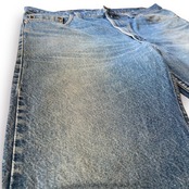 薄っすらとヒゲが見られ、古いヴィンテージデニムの様な色落ちまではいきませんが、モモ〜ヒザにかけての薄いブルーに対して、スネ〜裾にかけて濃いブルーが残る濃淡のある色落ちです。