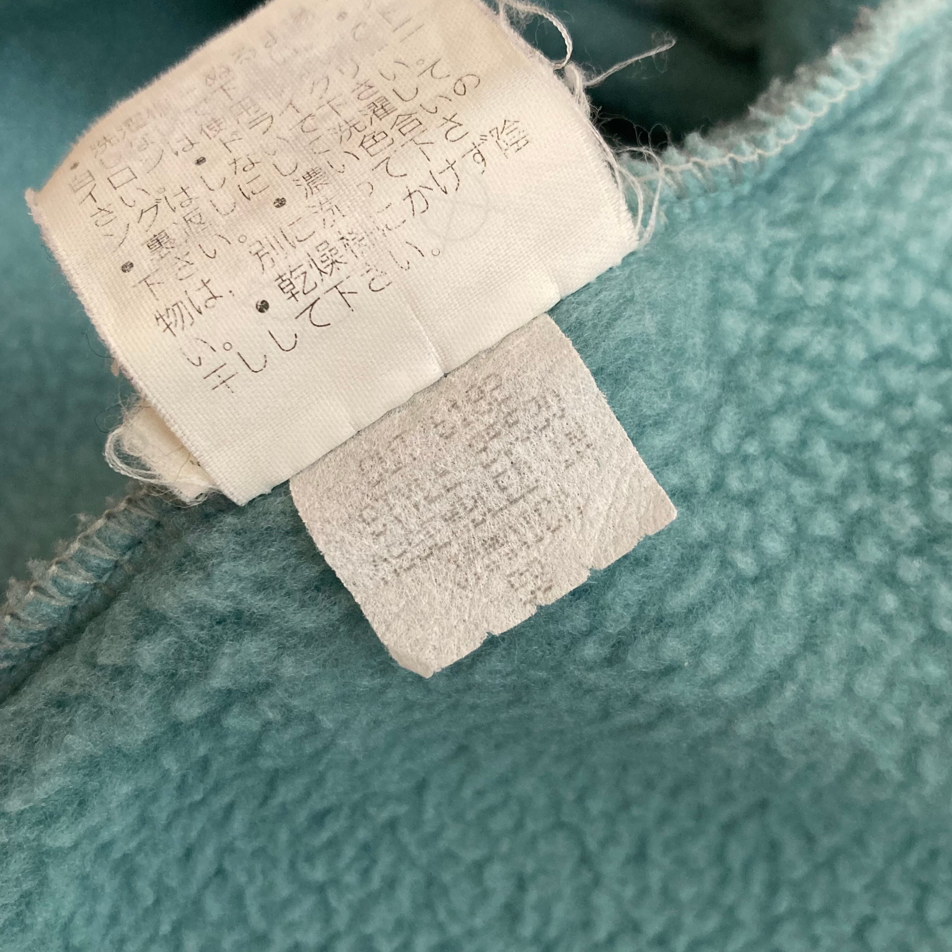 Vintageのフリースジャケットに良く見られる使用感として、袖口と裾のLycla Pipingに擦れによる若干の毛羽立ちがあり、両肘付近の生地が多少潰れています。