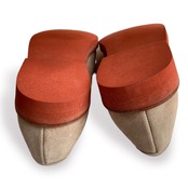 アッパーの素材は、起毛素材のスェードが一般的で、赤いレンガ色の"ブリックソール"と呼ばれるソールが特徴です。