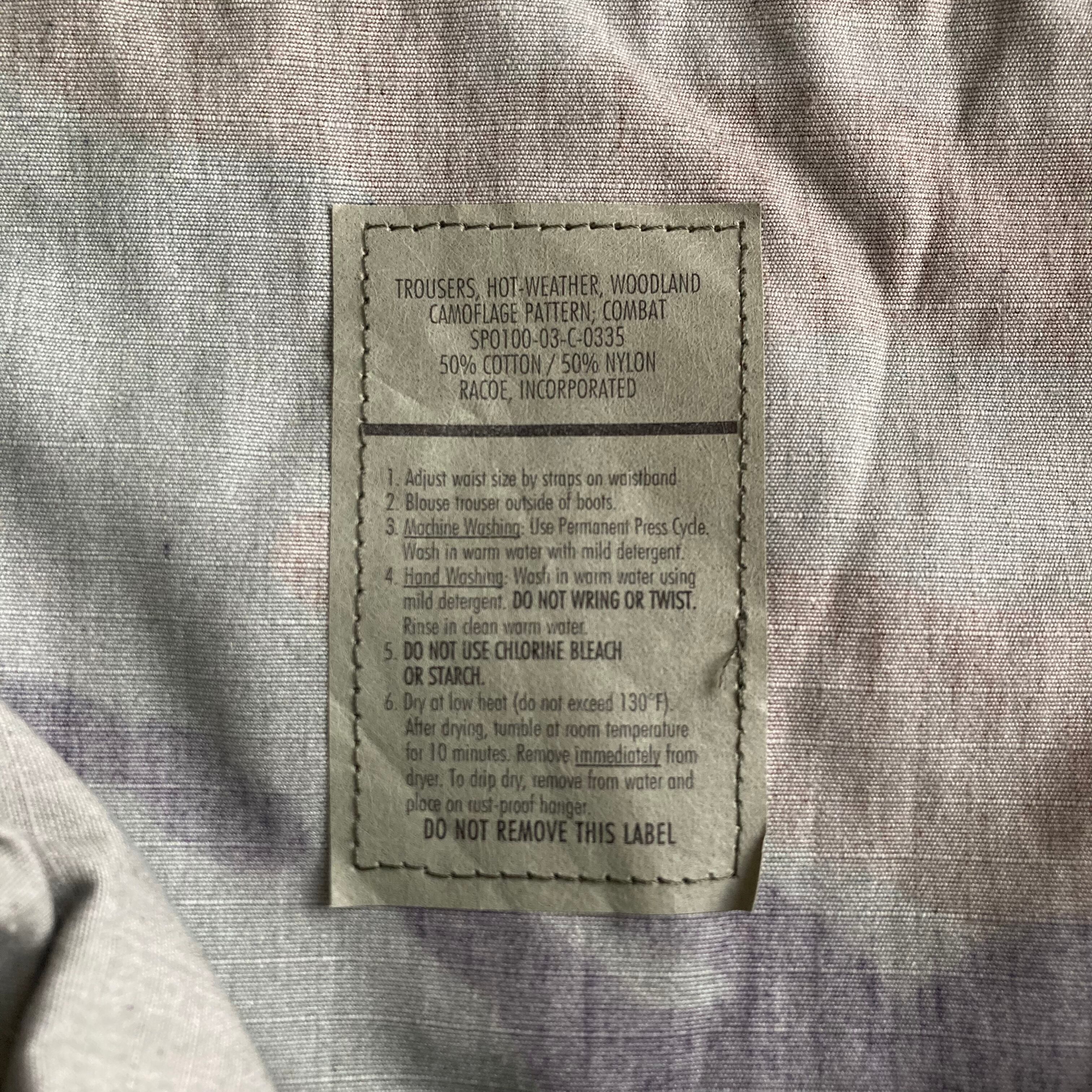 アメリカ軍を代表する迷彩色、WOODLAND CAMOUFLAGE HOT WEATHER TROUSERS 通称、ウッドランドカーゴパンツです。