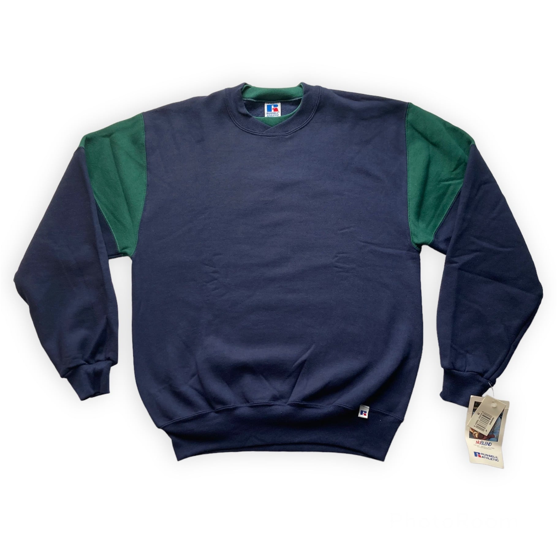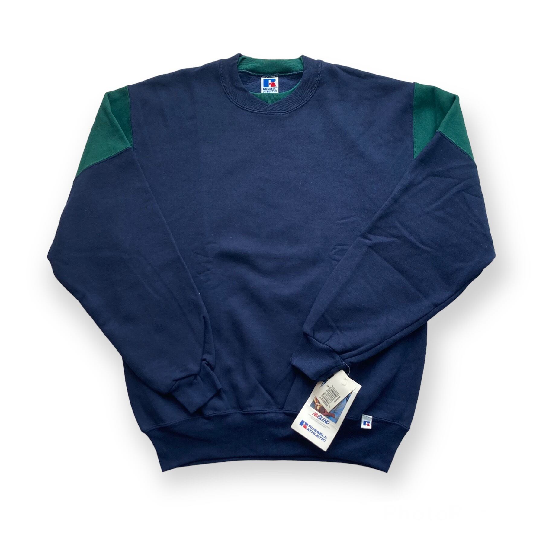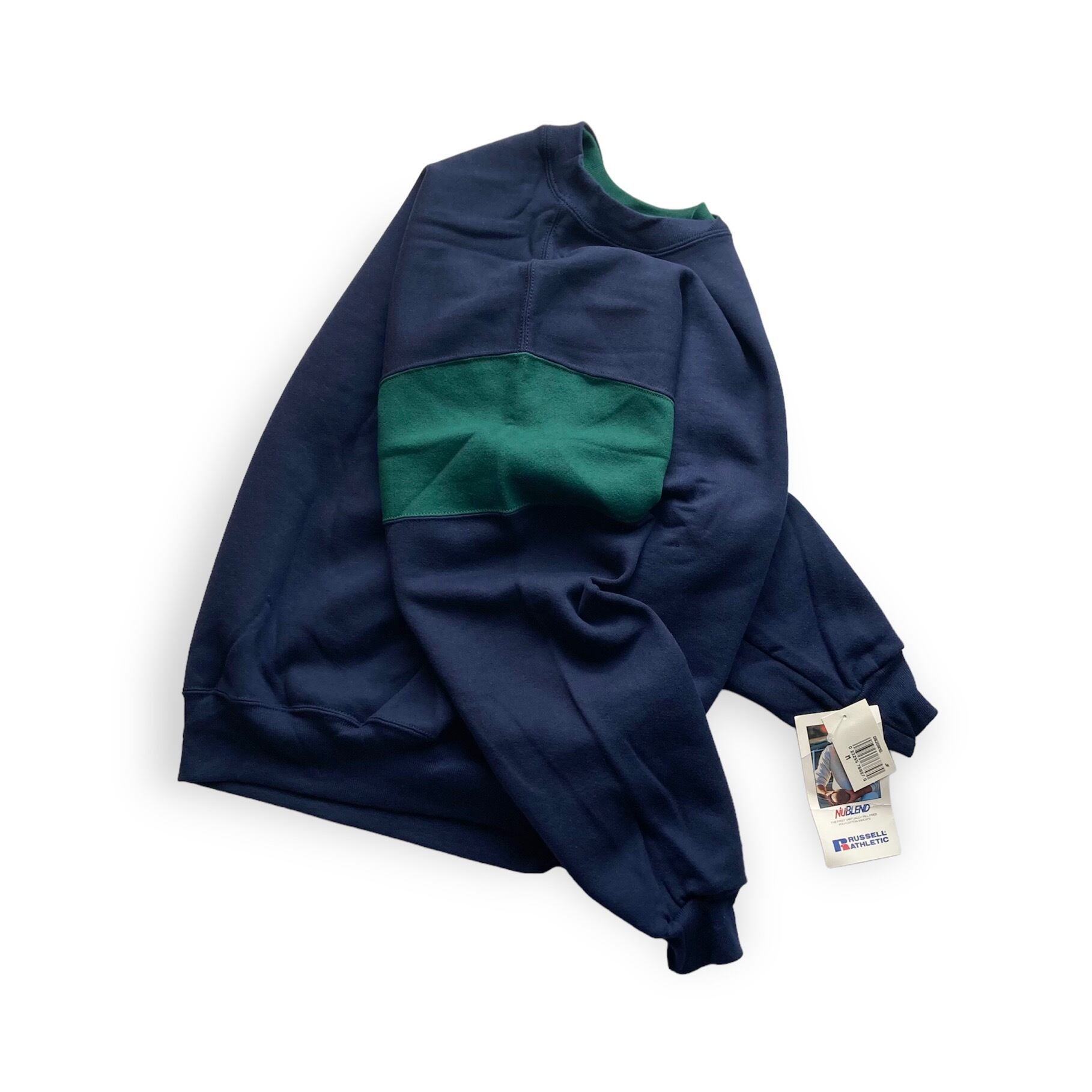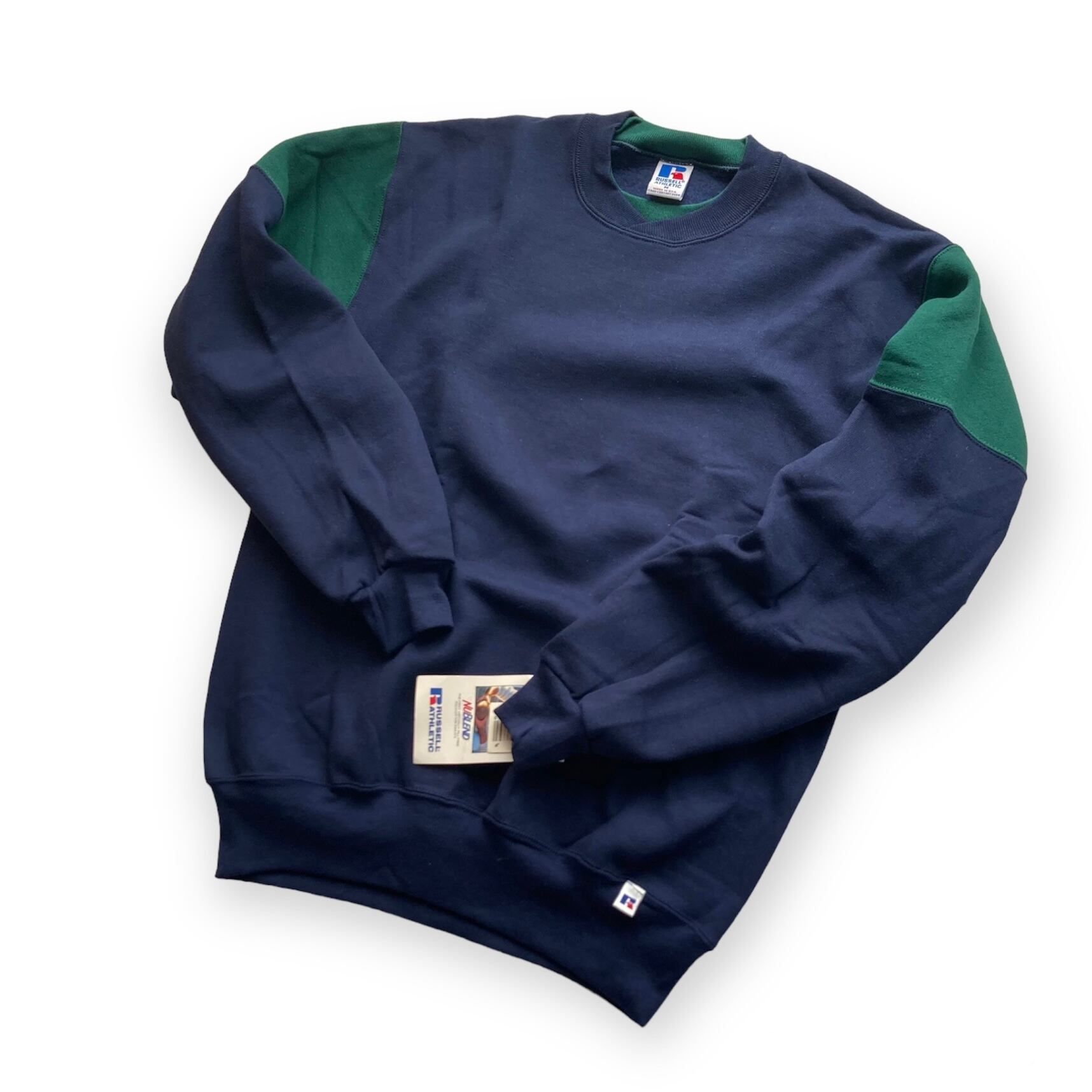 今回ご紹介する1990年代初期製、Russell AthleticのBicolor Swiched Crew Neck Sweat Shirt は、左袖口にペーパータグが付くデッドストックです。
