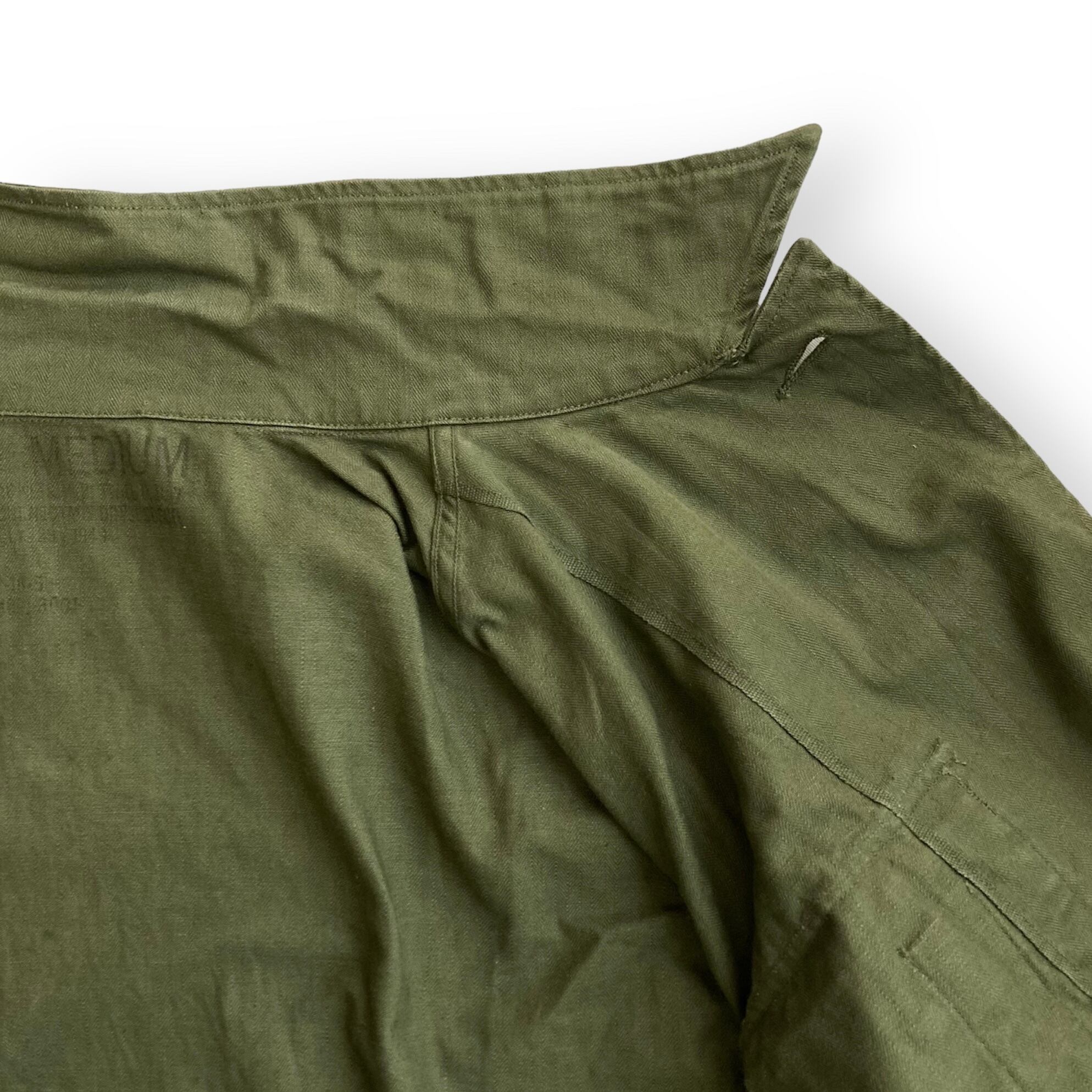通称、ユーティリティーシャツは、第二次世界大戦後の1947年、M-47 JACKETS HERRING BONE TWILL OD-7から始まり、1955年頃にHBT OD-7からCOTTON SATEEN OG107に素材変更され、この後も多くの仕様変更を繰り返し、1987年まで生産されたUS Militaryの傑作コットン製ジャケットです。