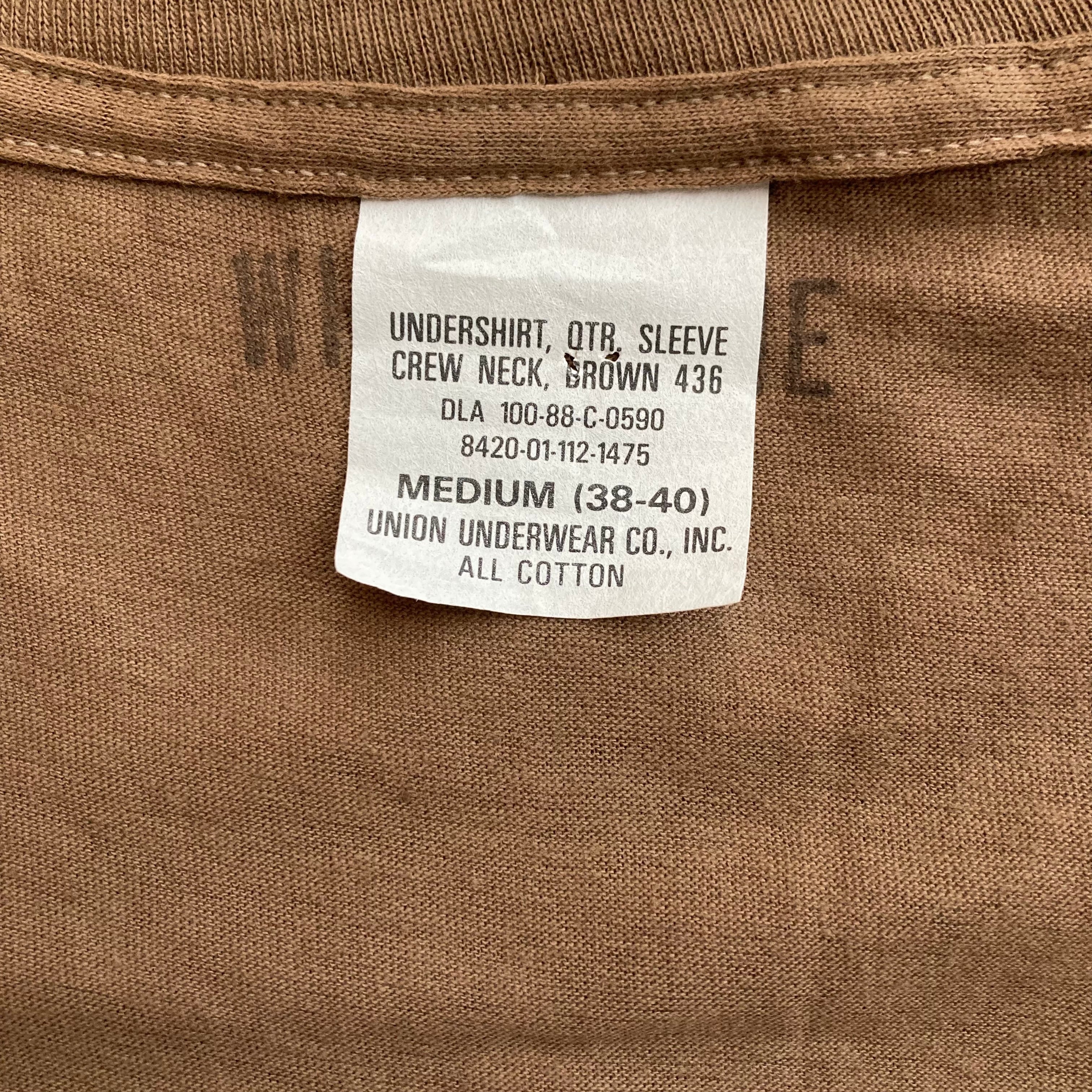 80's US ARMED FORCES UNDERSHIRT QTR SLEEVE CREWNECK BROWN 436