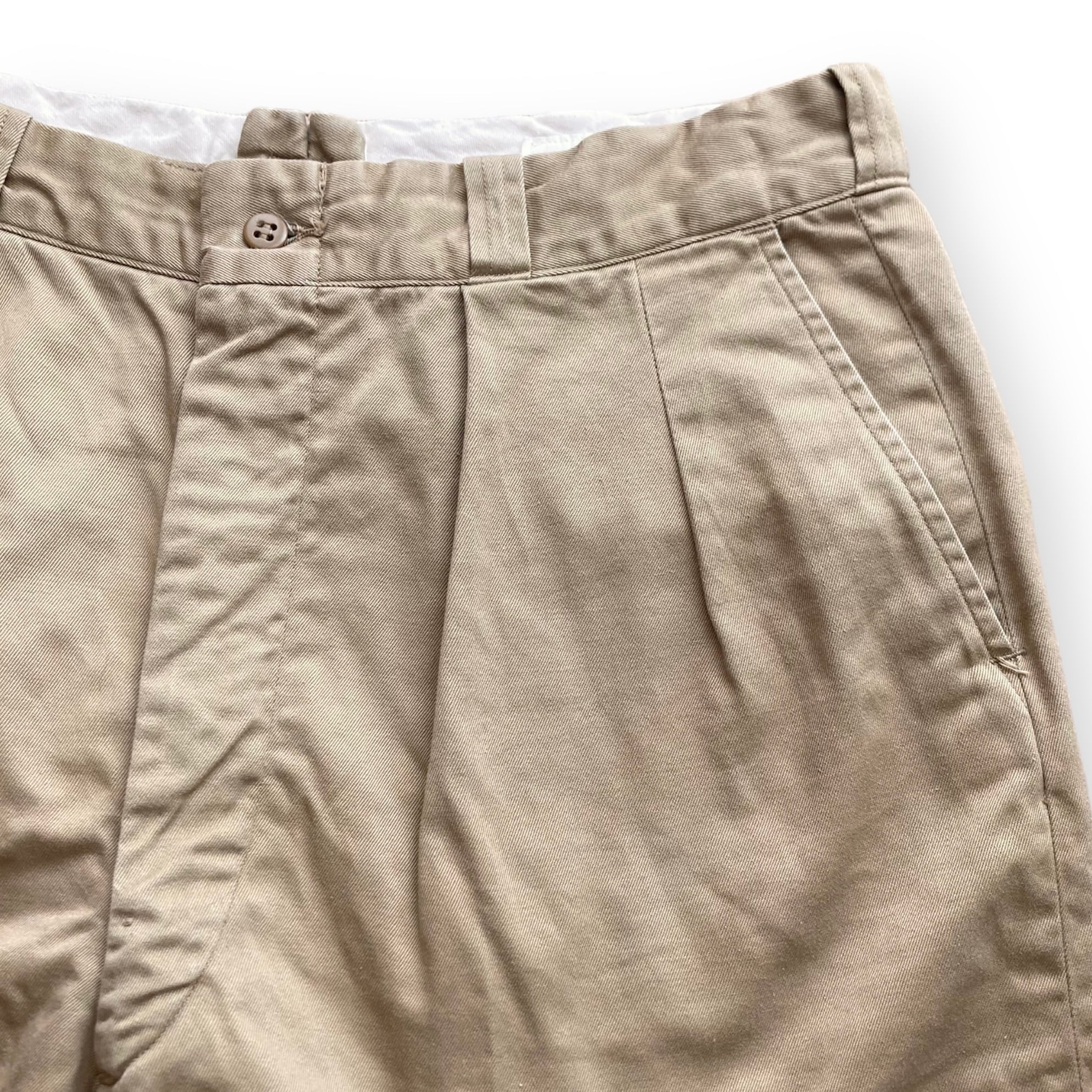 古着で見かけるミリタリーショーツは通称、軍チノのCotton Trousersをカットオフして、ショーツへ加工した物が多いと思いますが、こちらは表記が示す通り、最初から"Shorts"としてArmyに納品していました。