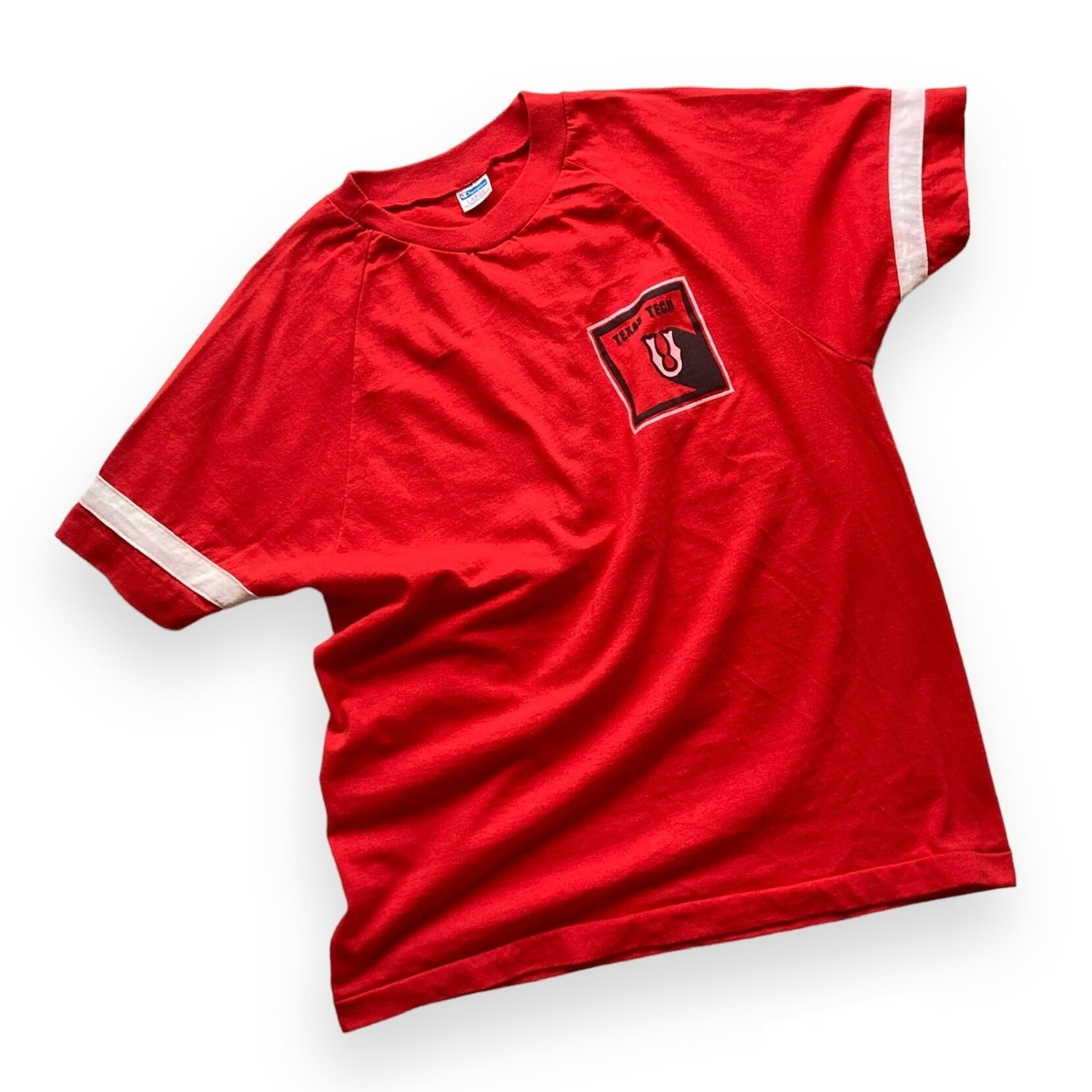 左胸にTEXAS TECH UNIVERSITY (TTU)のプリントが施されています。