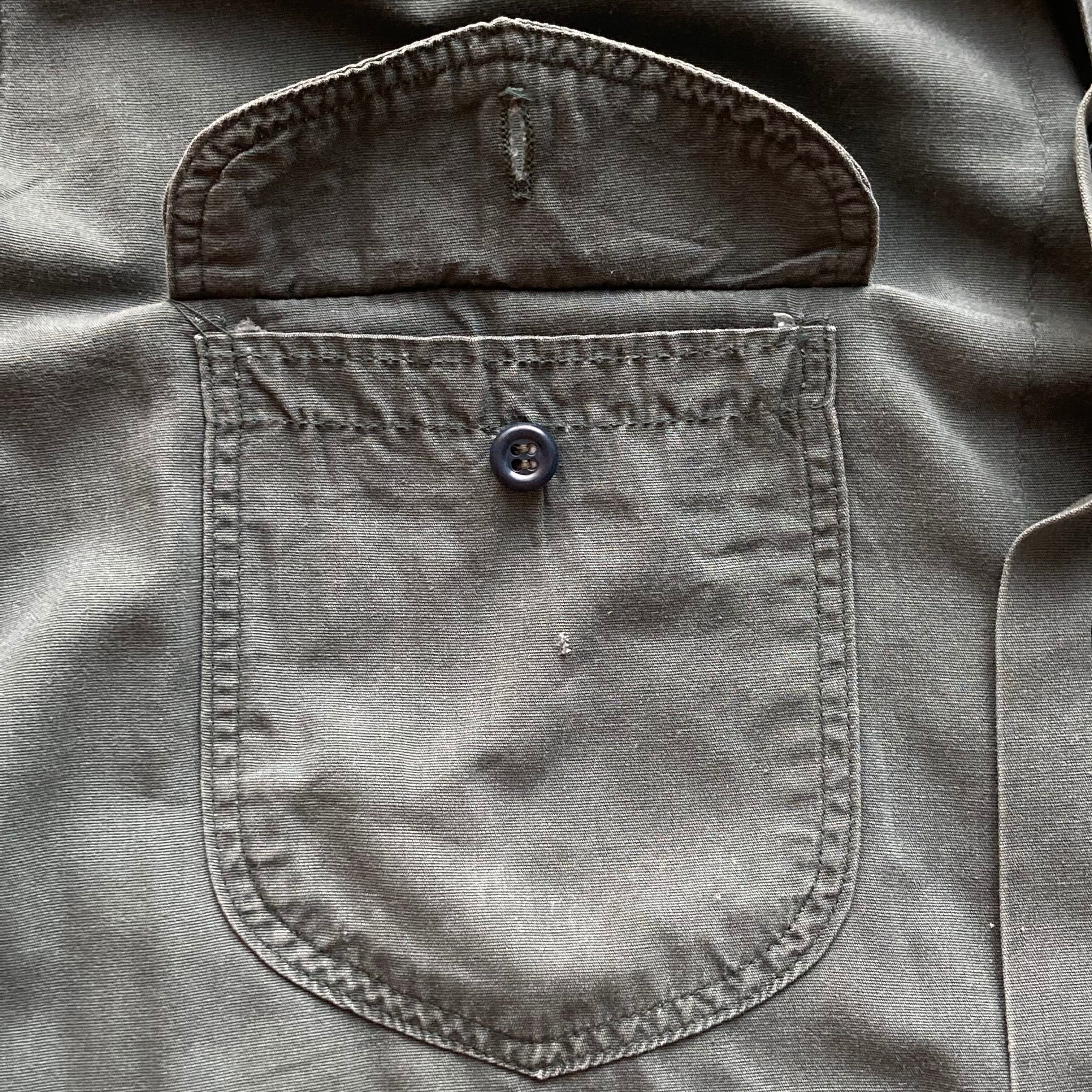 通常、ワークシャツは、チノパンに代表される綾織りのツイル生地を使用したシャツがポピュラーなので、このポプリン素材のワークシャツは球数が少なく希少です。