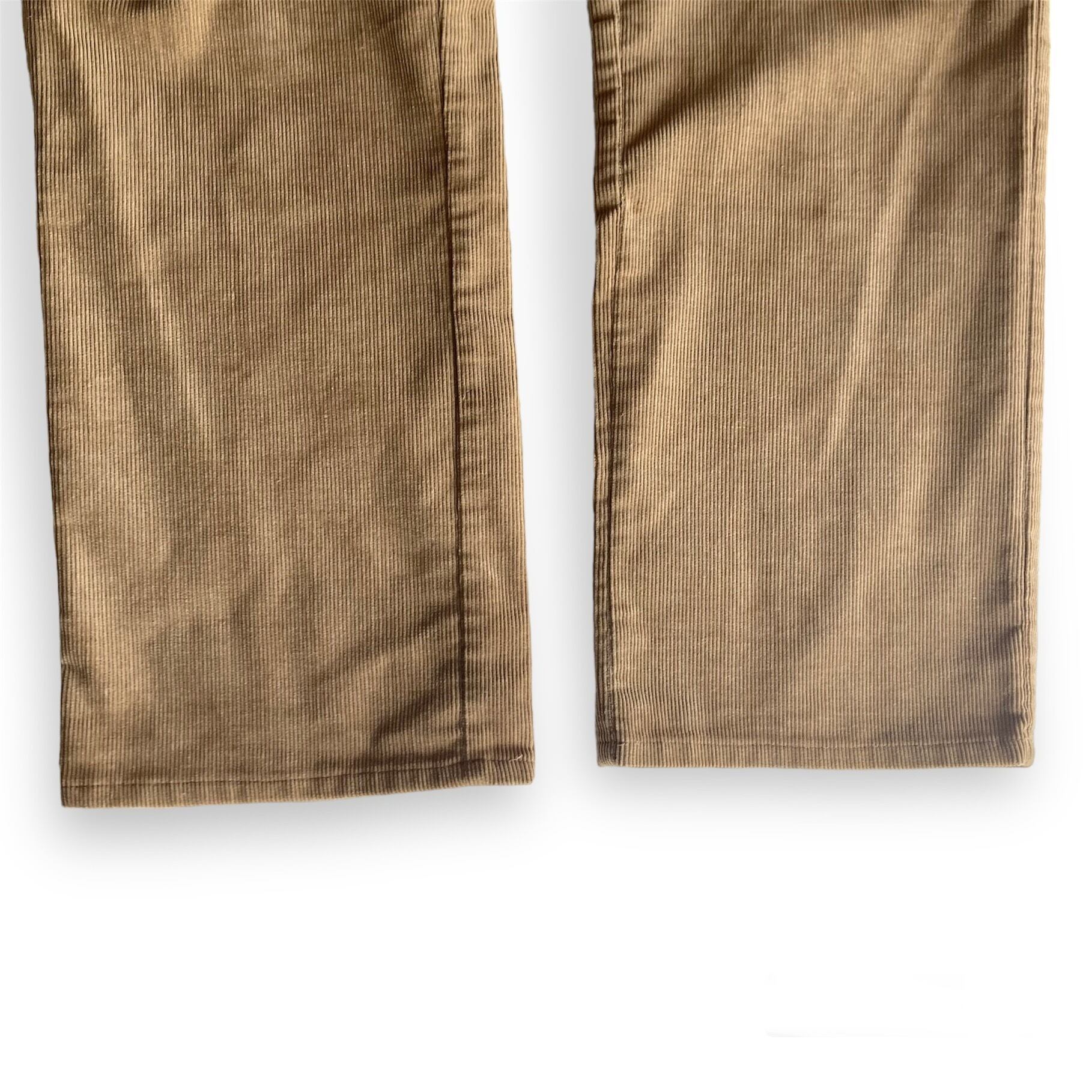 生地はハリがあり、古着のコーデュロイパンツに良く見られる裾やポケット口、股部分の摩擦による畝とびのダメージは無い良好な状態です。