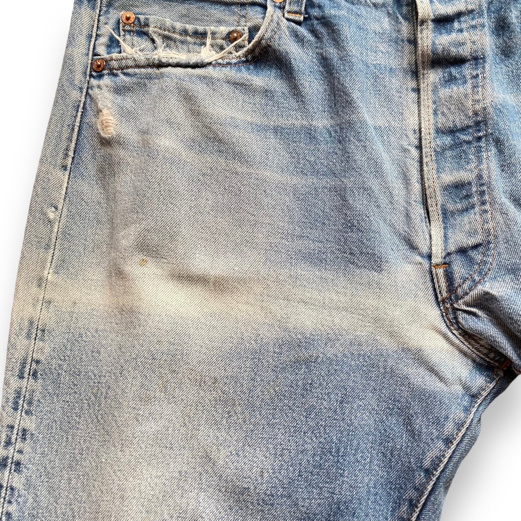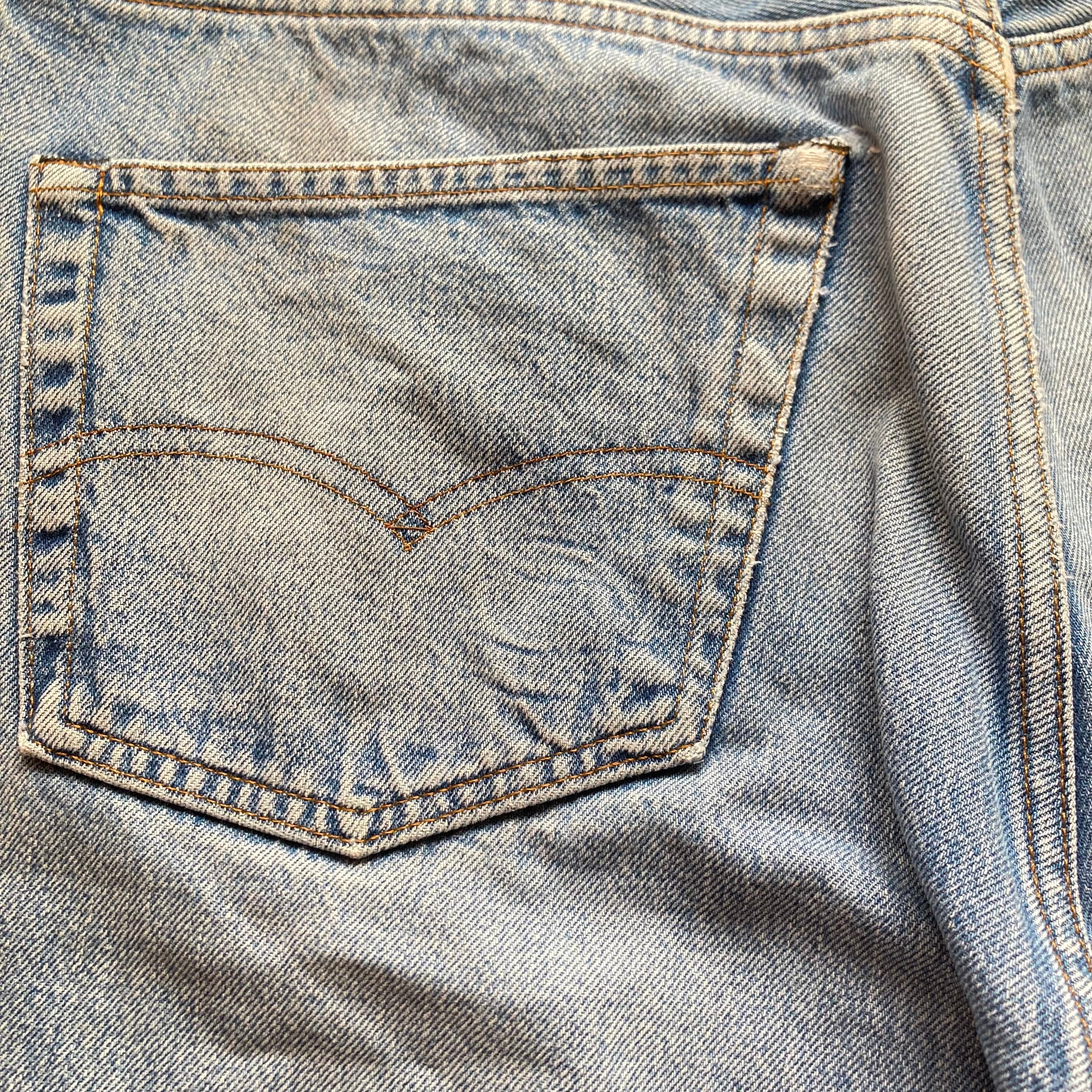 古着のLevi'sによく見られる紙パッチが欠損しかかっていますが、サイズ表記は読み取れ、各所ステッチのほつれが見られますが、着用は問題なくできる状態です。