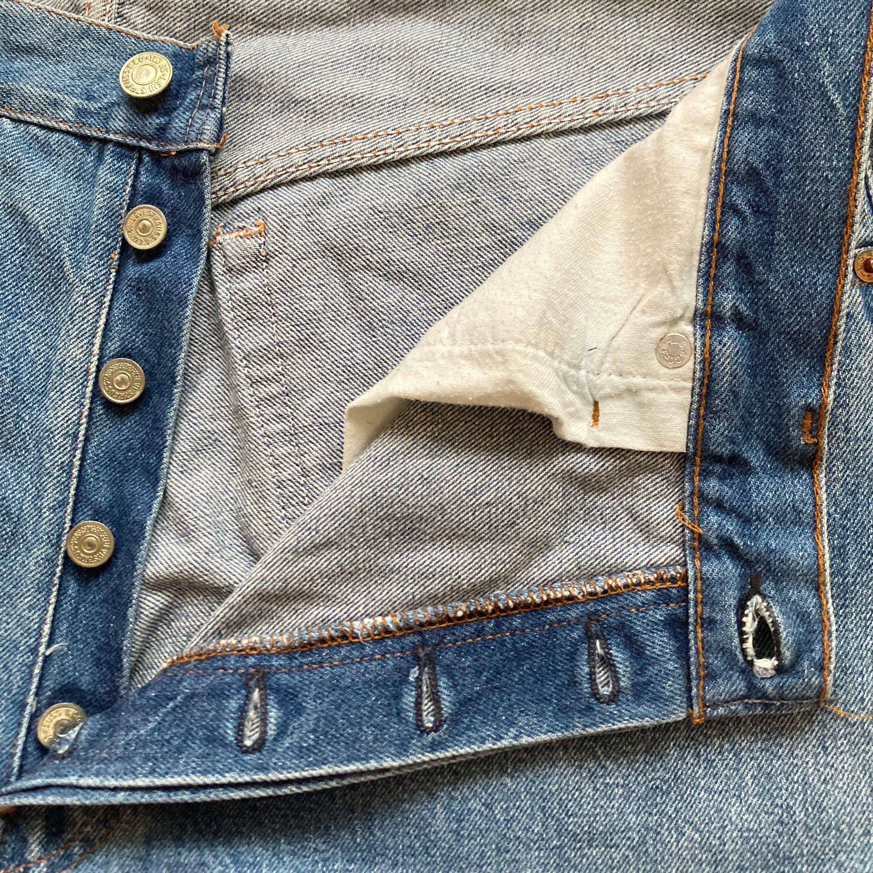 お探しの方も多いウエスト大きめレングス短めの希少なサイズですので、サイズが合う方、古着にご理解のある方、にとてもオススメな1本です。