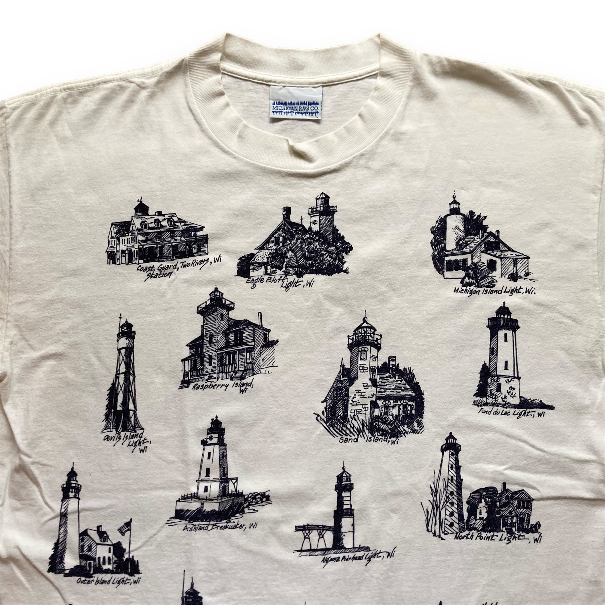 今回ご紹介するAll Over Pattern T-SHIRTは、Wisconsinにある灯台をモチーフにデザインしたプリントTシャツです。