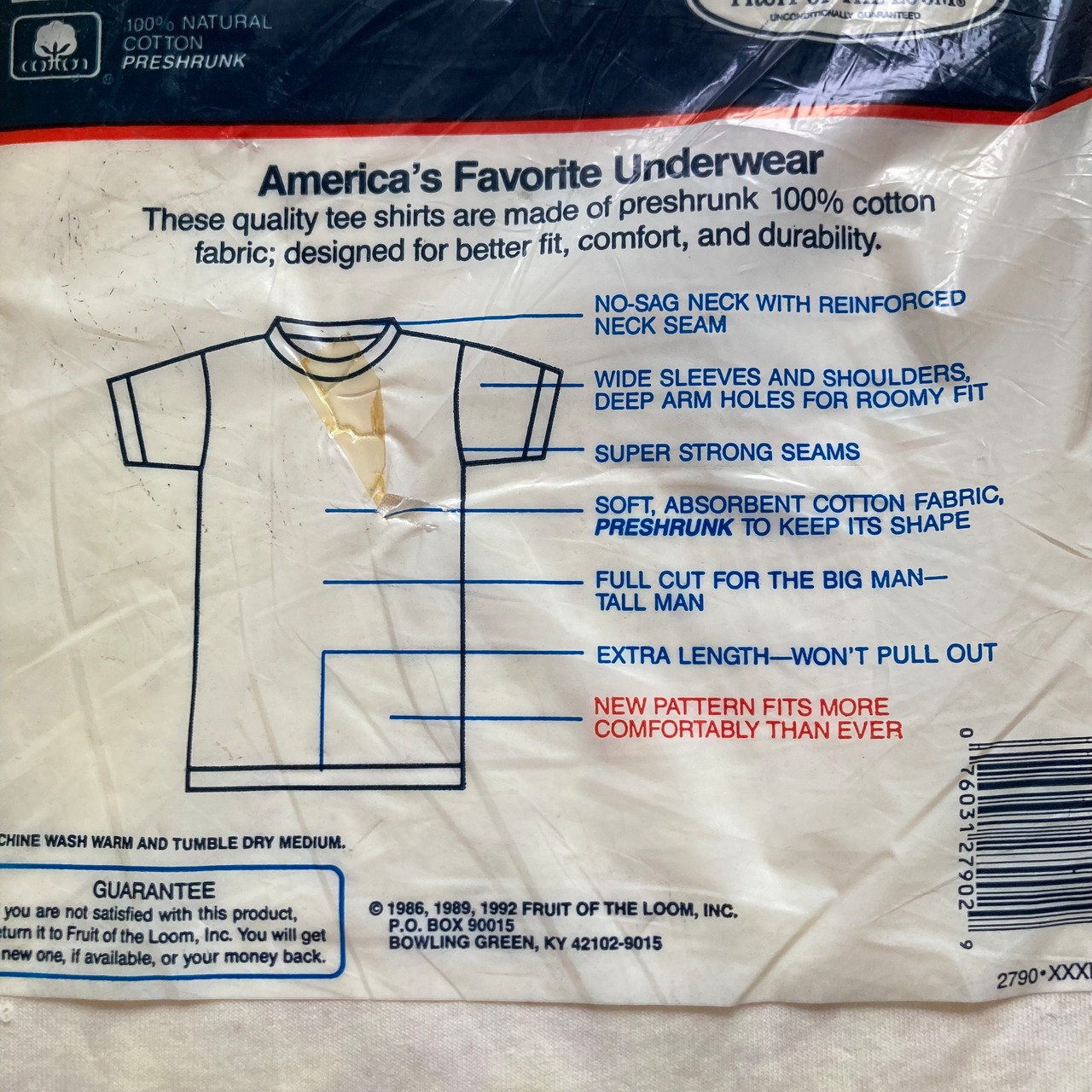1986,1989,1992年のクレジットがパッケージ裏に入っているので、1992年頃生産されたパックTシャツだとわかります。